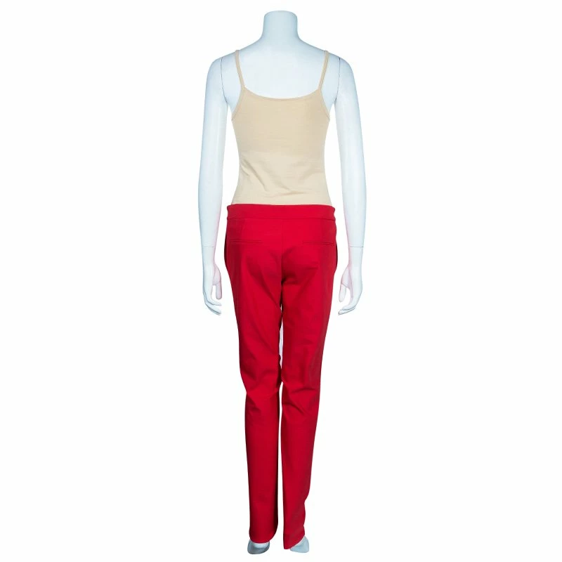 Update your style with these extraordinary brilliant red trousers by Stella McCartney. Tailored to perfection in polyamide, cotton and elastane, these look outstanding in an enthralling red. Pair these with your most stylish strappy top for a long sought chic look!