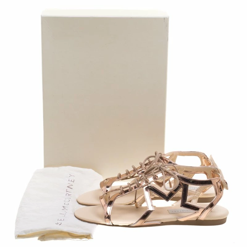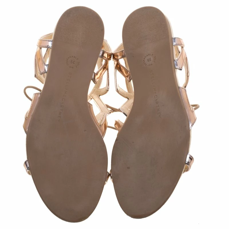 Stella McCartney is known for her posh designs and this Star Cut Out Lace Up Sandals perfectly carries the trait. Crafted from Patent leather, these sandals have a beautiful Rose Gold exterior and lace-up details at the front. They feature straps cut out like stars on the sides and velcro fastening at the back. This pair can be worn with your everyday outfits.