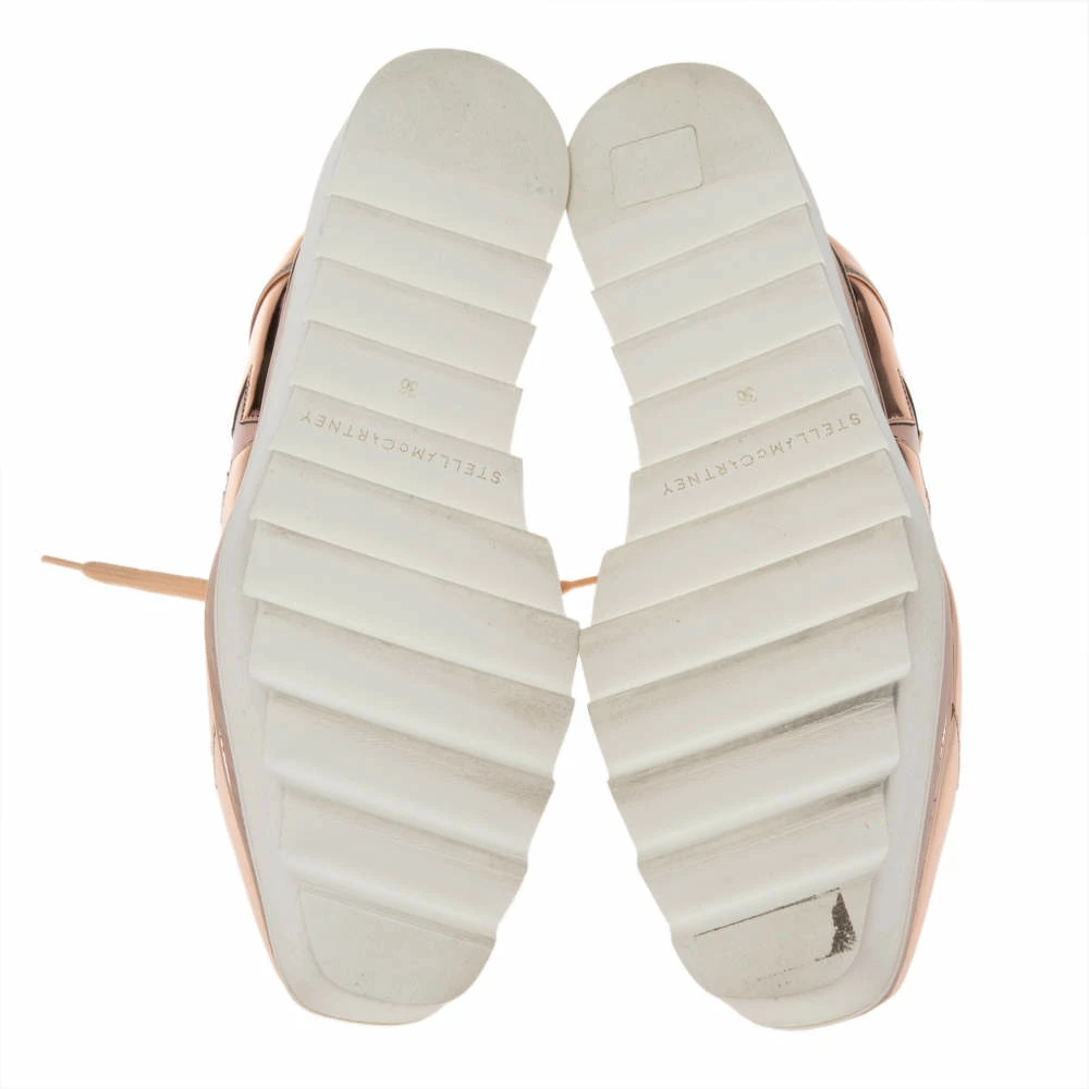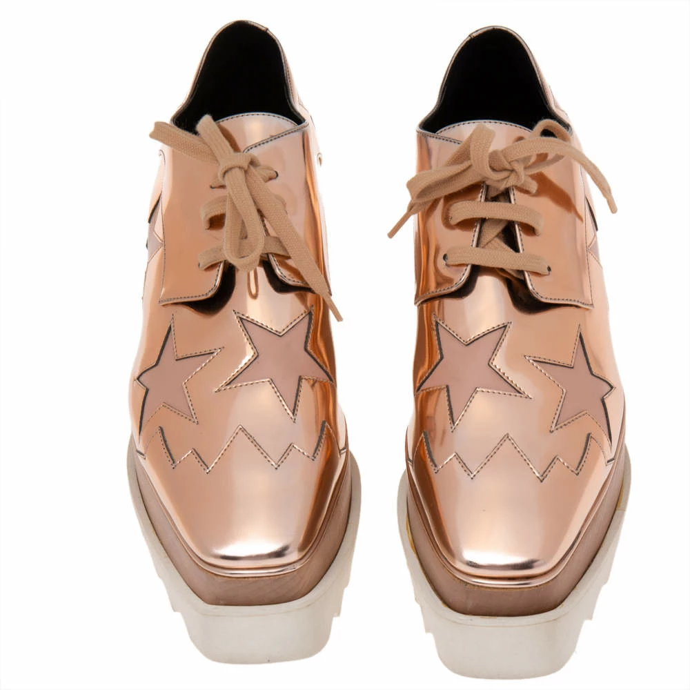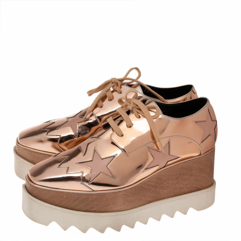 Stella McCartney exudes her high style and unique fashion taste with these Elyse sneakers. They are brimming with exquisite details like the faux leather star cut-outs on the faux patent leather exterior, the lace-ups, and the thick platforms. Grab this metallic rose gold pair today and let it help you express your fabulous style!