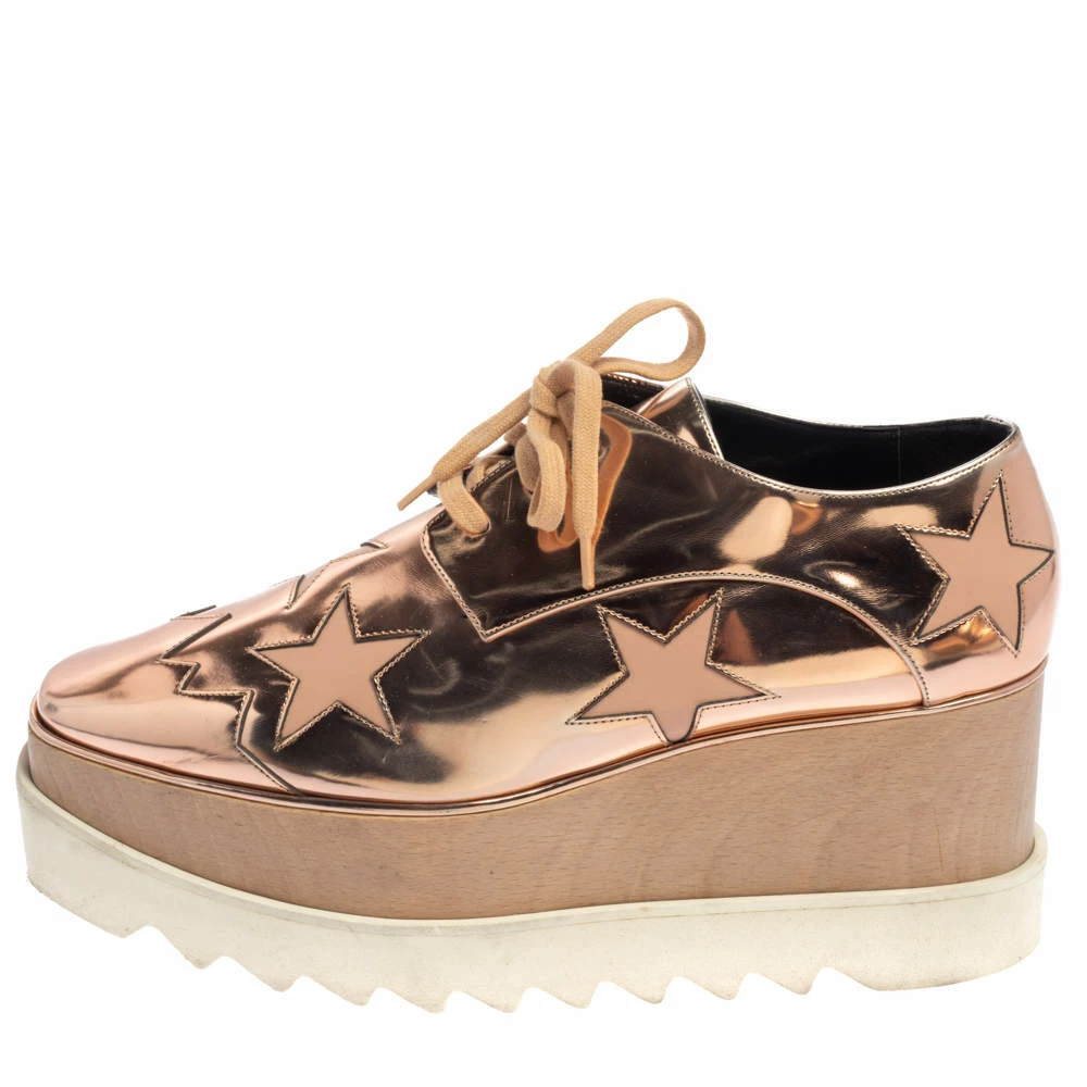 Stella McCartney exudes her high style and unique fashion taste with these Elyse sneakers. They are brimming with exquisite details like the star details on the faux patent leather exterior, the laces, and the thick platforms. Grab this pair today and let it help you express your fabulous style.