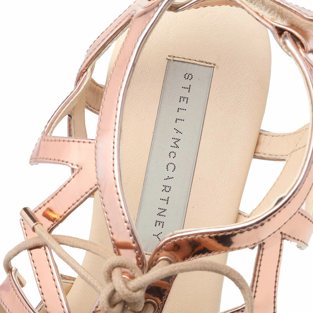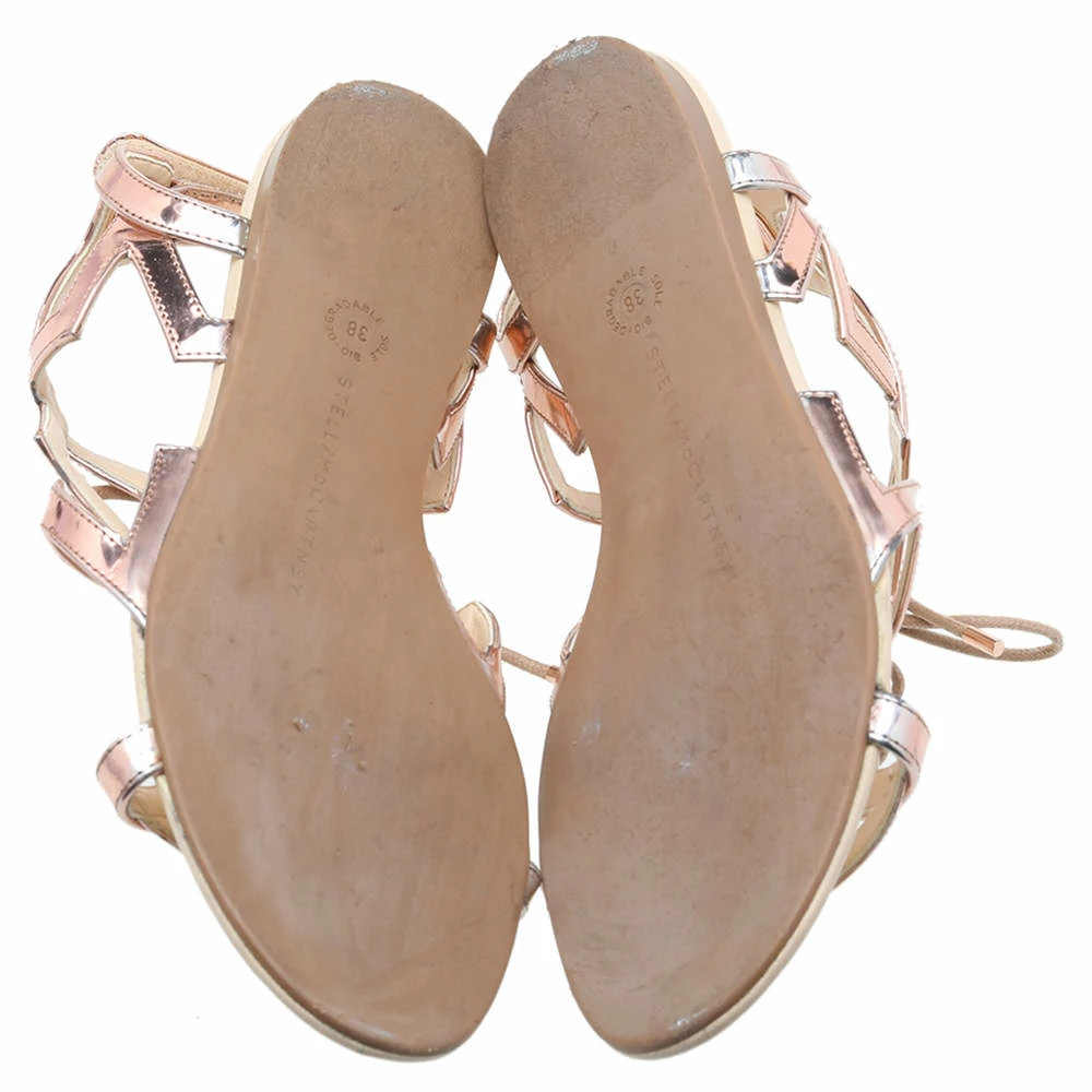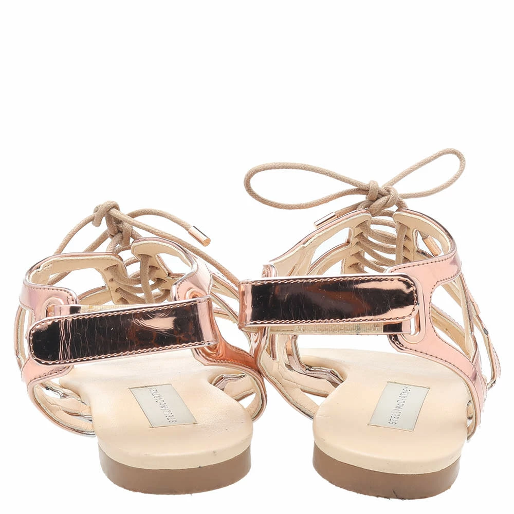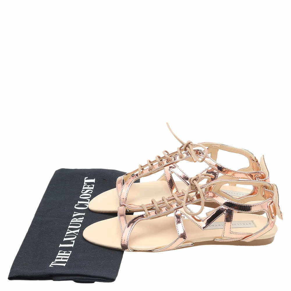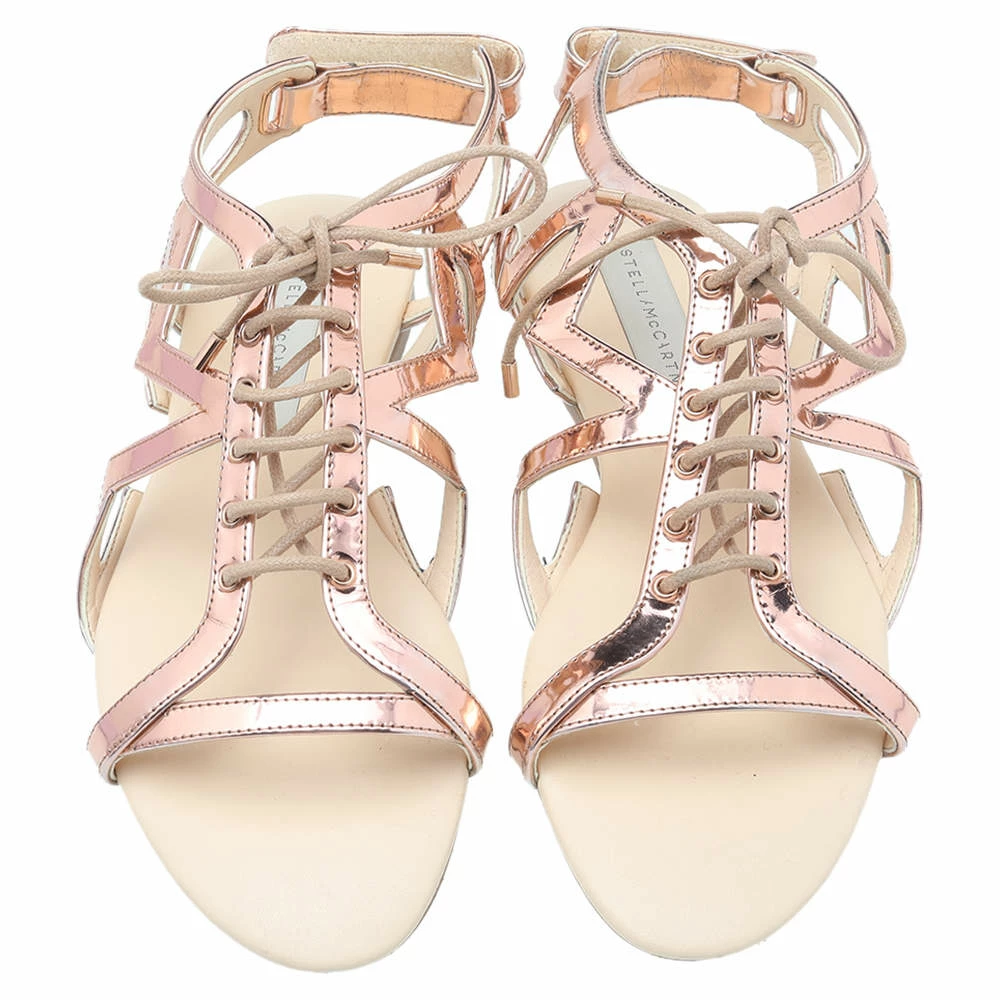 These gladiator flat sandals from Stella McCartney will glam up your feet in no time. They are crafted using rose-gold patent leather with cutout accents, rose-gold toned hardware, and lace-up details added to their structure. Match them with your casual outfit and look absolutely stunning.