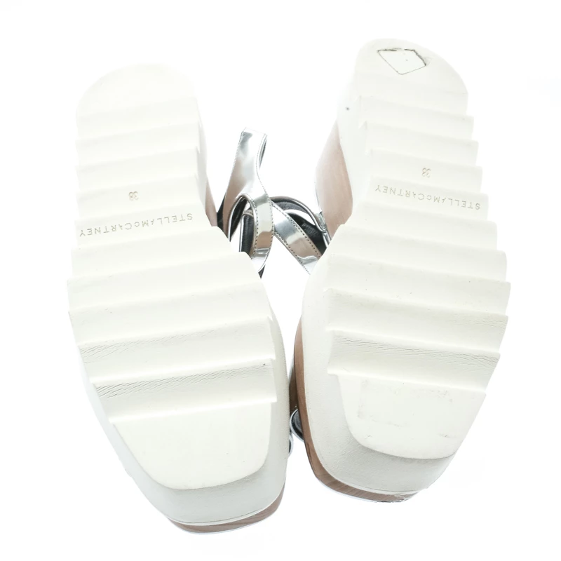 Feel great in your casual style with these Elyse Star sandals from Stella McCartney. They have a silver faux leather exterior with front strap beautified with star motifs and an ankle strap detailed with buckle fastenings. The pair is set on a sustainable wooden platform with chunky rubber saw-edge soles that offer maximum grip and comfort.