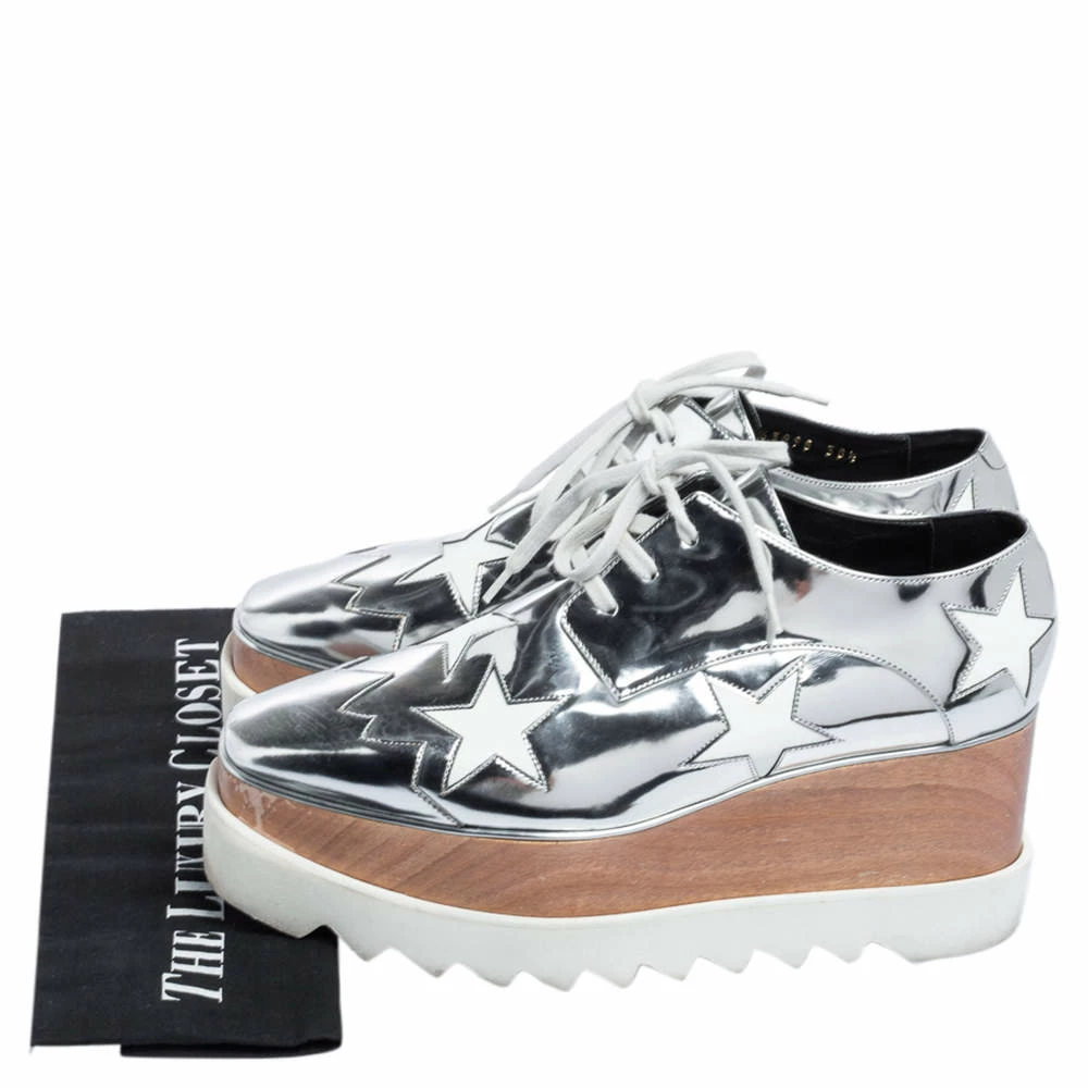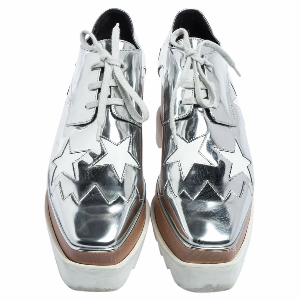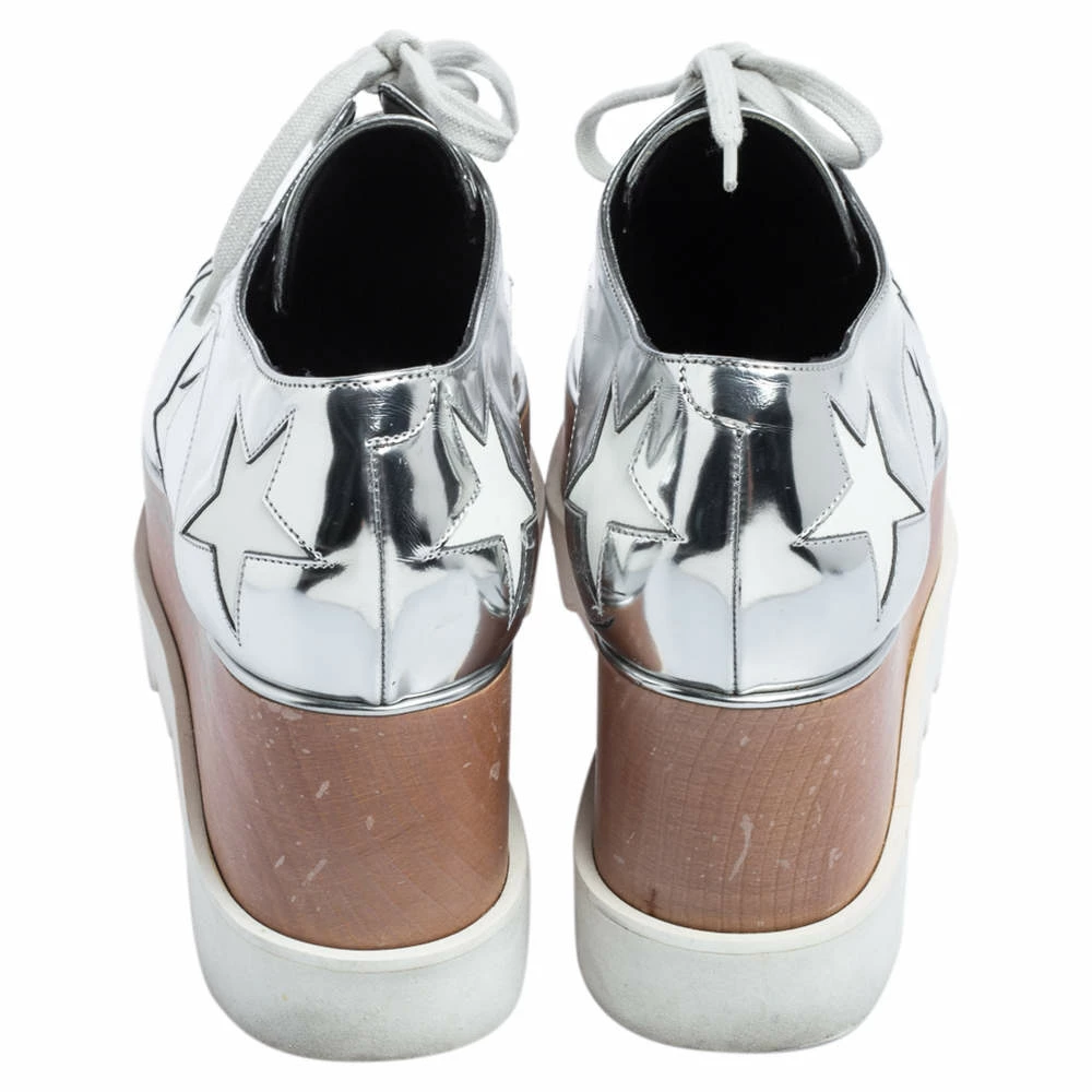 Stella McCartney exudes high style and unique fashion taste with these Elyse Star sneakers. They are brimming with exquisite details like the silver patent leather and faux leather exterior. They come with lace-ups on the vamps and thick platforms. Grab these sneakers today and express your fabulous style!