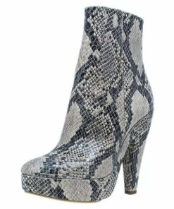 Part of the 2013 Fall/Winter collection, this pair of Stella McCartney ankle boots has it all. Its faux snakeskin leather exterior gives this pair an exotic look with different shades of brown, coupled with self-covered platforms and 11cm heels. Lined with beige faux leather, this pair have side zipper closures for easy wear.