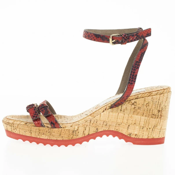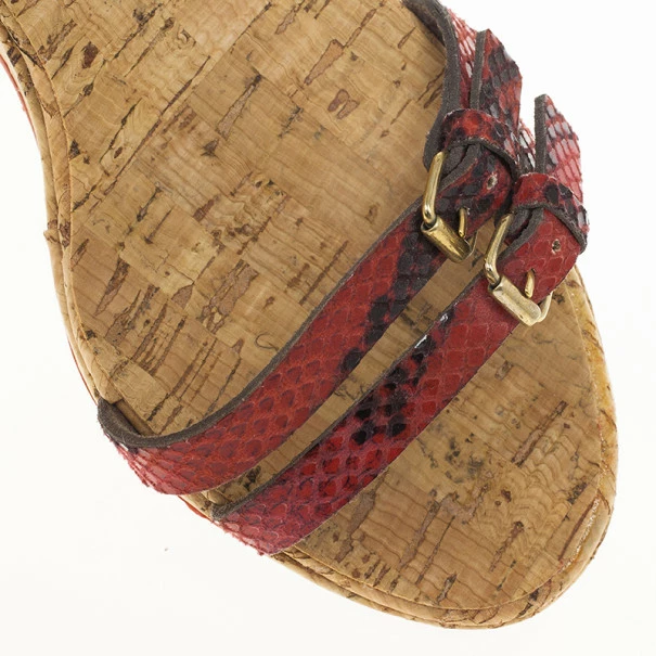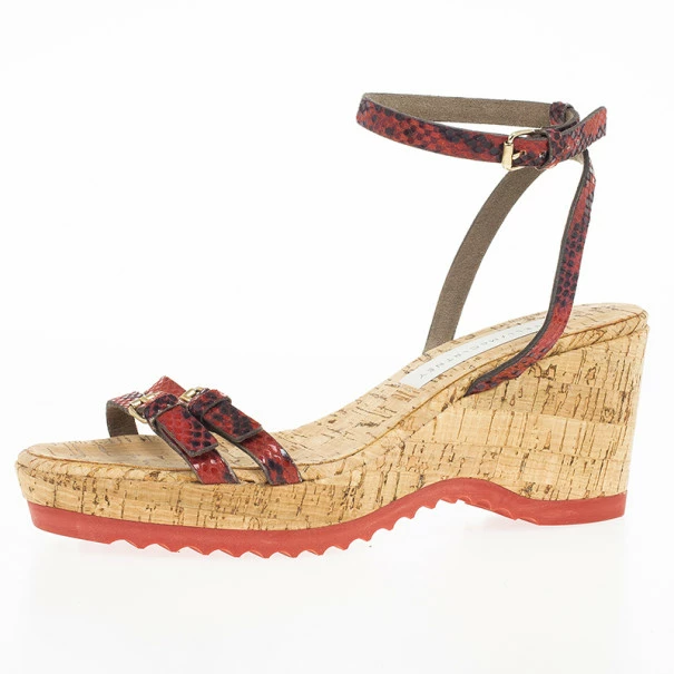 These Stella McCartney Snake Embossed Linda Cork Wedge Sandals are stylish and fun shoes you will absolutely love. They are made from faux snake embossed leather with front toe straps and ankle straps. Their insoles are unlined.