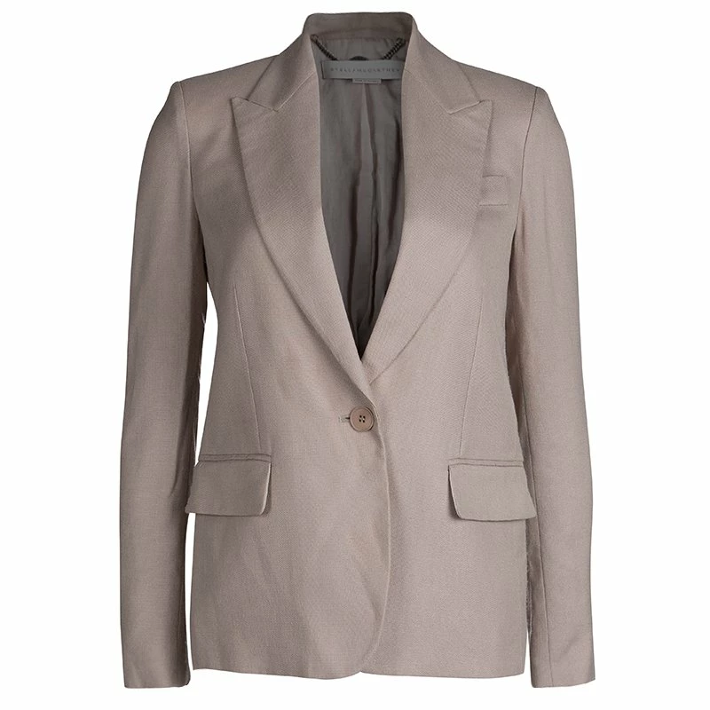 A neatly cut silhouette is Stella McCartneyโs trademark and this beige blazer is no different. Well-fitting sleeves and peaked lapels give it a well-tailored finish. A single button holds things together and two pockets on the front add to its design.