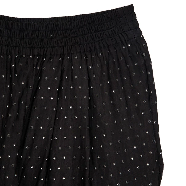 Opt in for a chic yet fun look with these harem pants by Stella McCartney. They feature elastic ankles and waist. They are accented with sparkling aluminum embellishments.