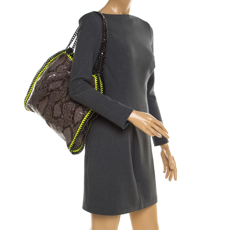 This Falabella tote from Stella McCartney will make the dream of countless women come true. Crafted from faux Python, it is durable and stylish. While the chain detailing elevate its beauty, the fabric-lined interior will dutifully hold all your daily essentials. You are sure to make hearts skip when you swing this tote using the chain handles.