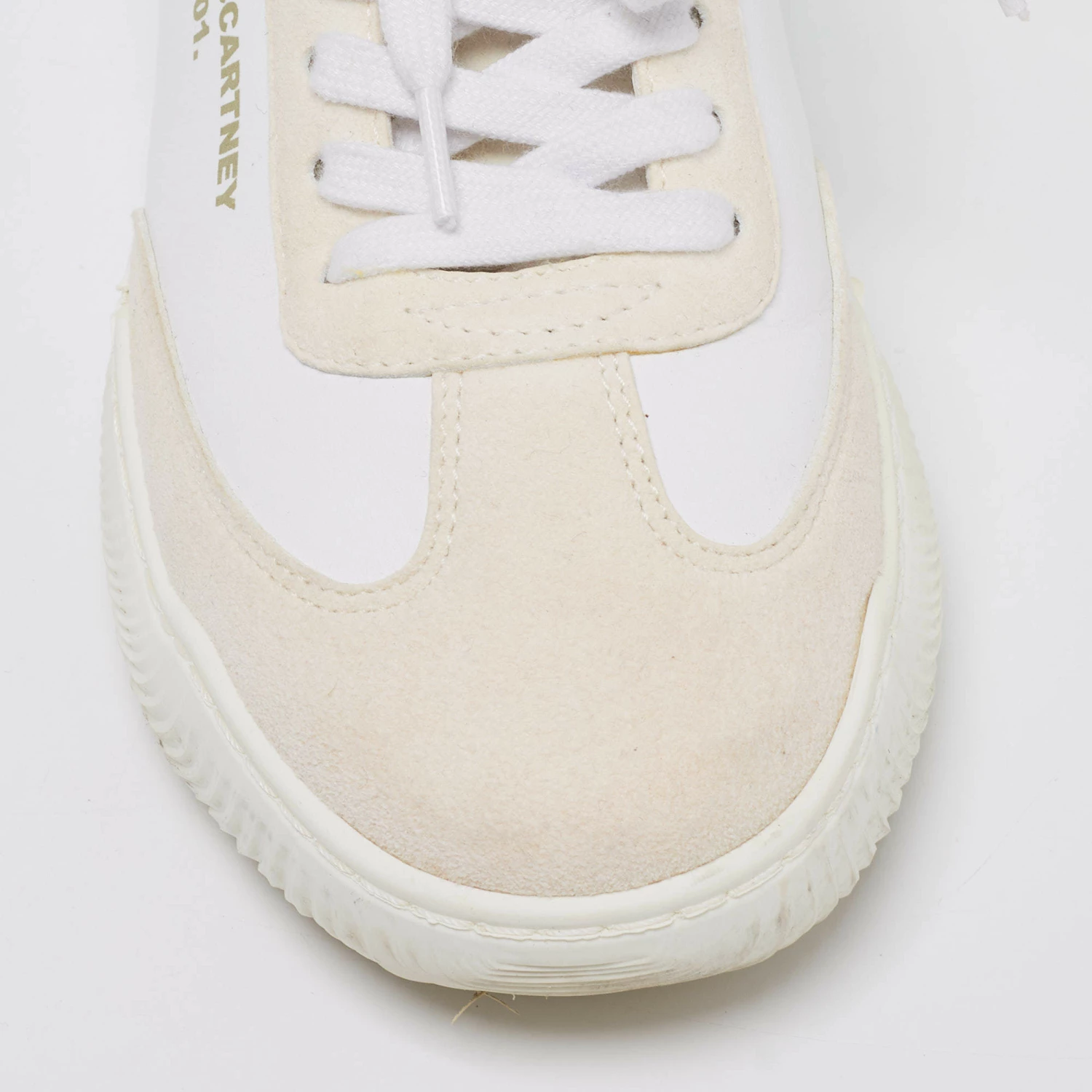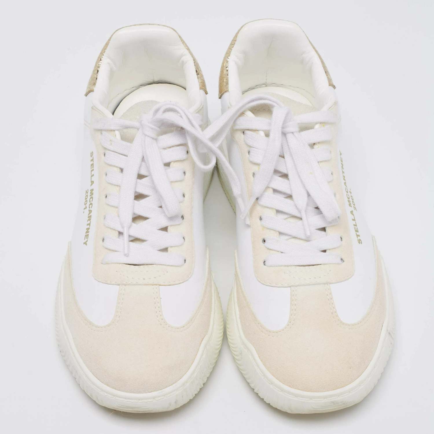 These Stella McCartney sneakers are an apt choice for a statement look. Created from faux leather and faux suede, they are paired with lace-up vamps, a brand signature on the sides, and rubber soles. The python-embossed detailing on the counter makes these shoes a valuable accessory.
