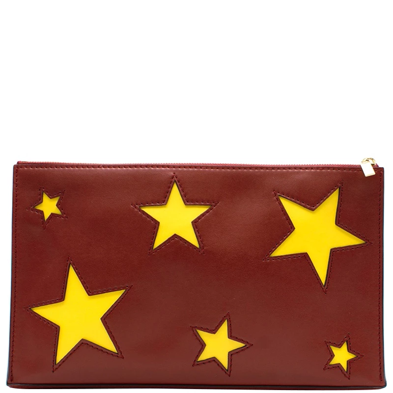A starry design, this clutch from the house of Fendi is a swanky addition to your wardrobe, if you love to rock a trendsetting look. Crafted in elegance, the bag features a two-tone leather construction, enhanced by a zip-closure that opens to reveal a smartly designed space that can fit in your little essentials for the day. The stylish patchworked stars on the surface imparts modish touch, that makes you stand out from the crowd.