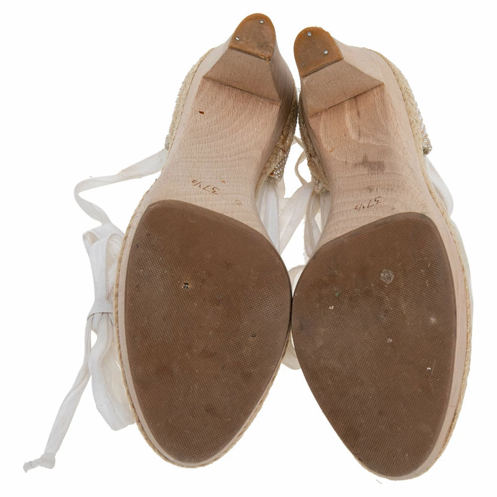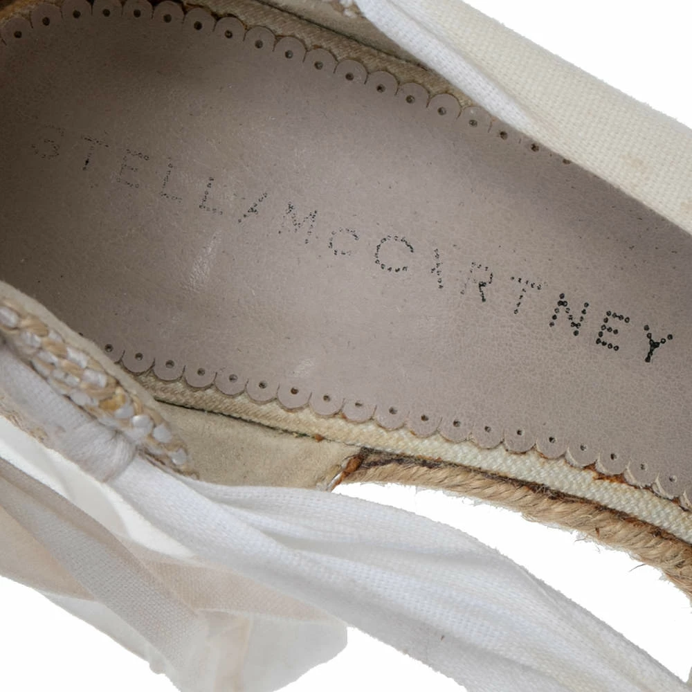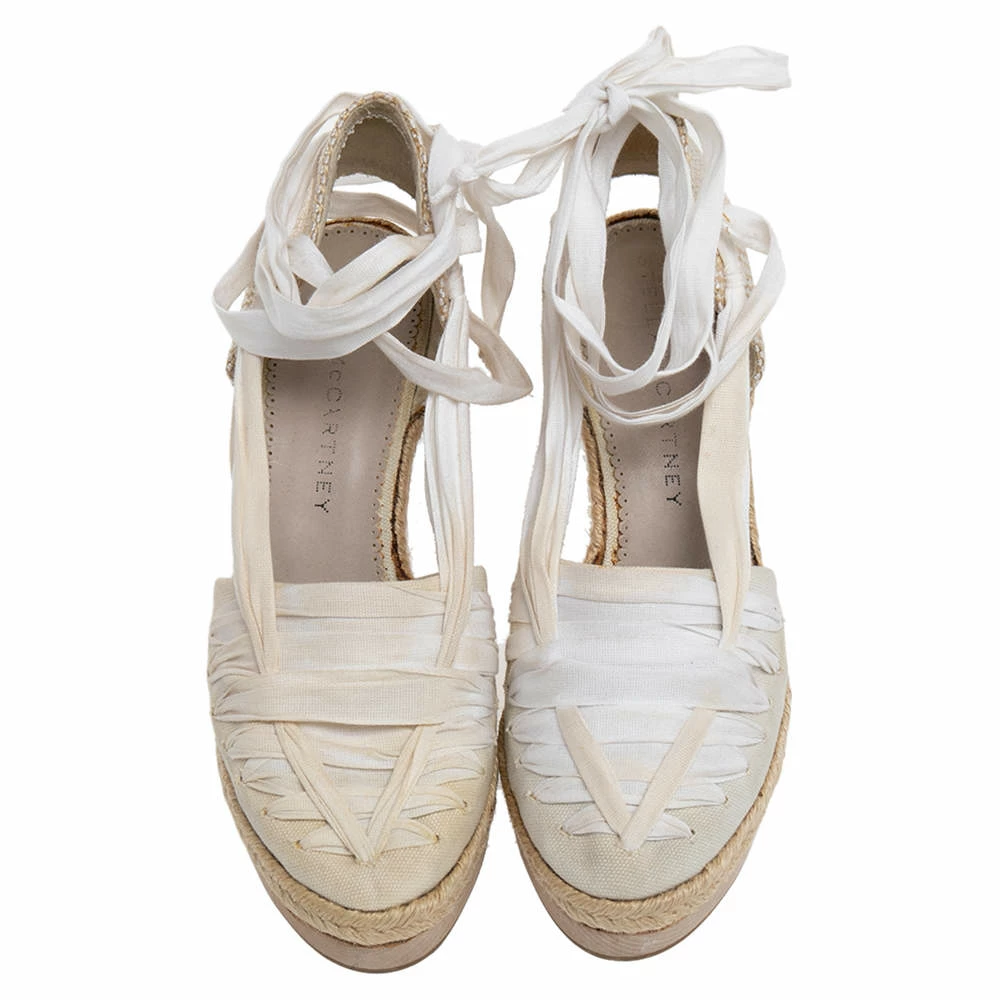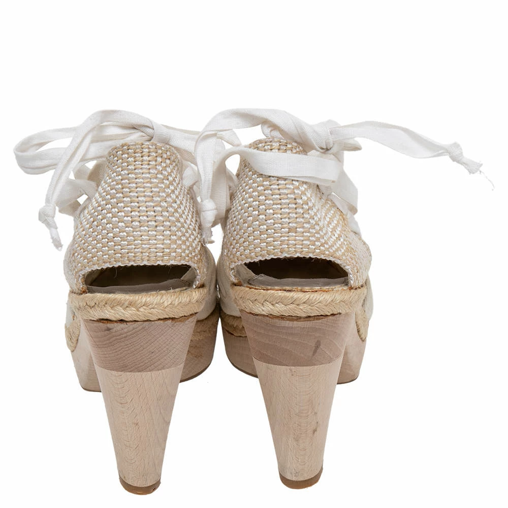 Keep it casual and chic with these fabric & canvas pumps. They hail from the house of Stella McCartney and carry a lovely shade of white. They have closed uppers, platforms, ankle wraps and 10.5 cm heels. They are finished with rubber soles.