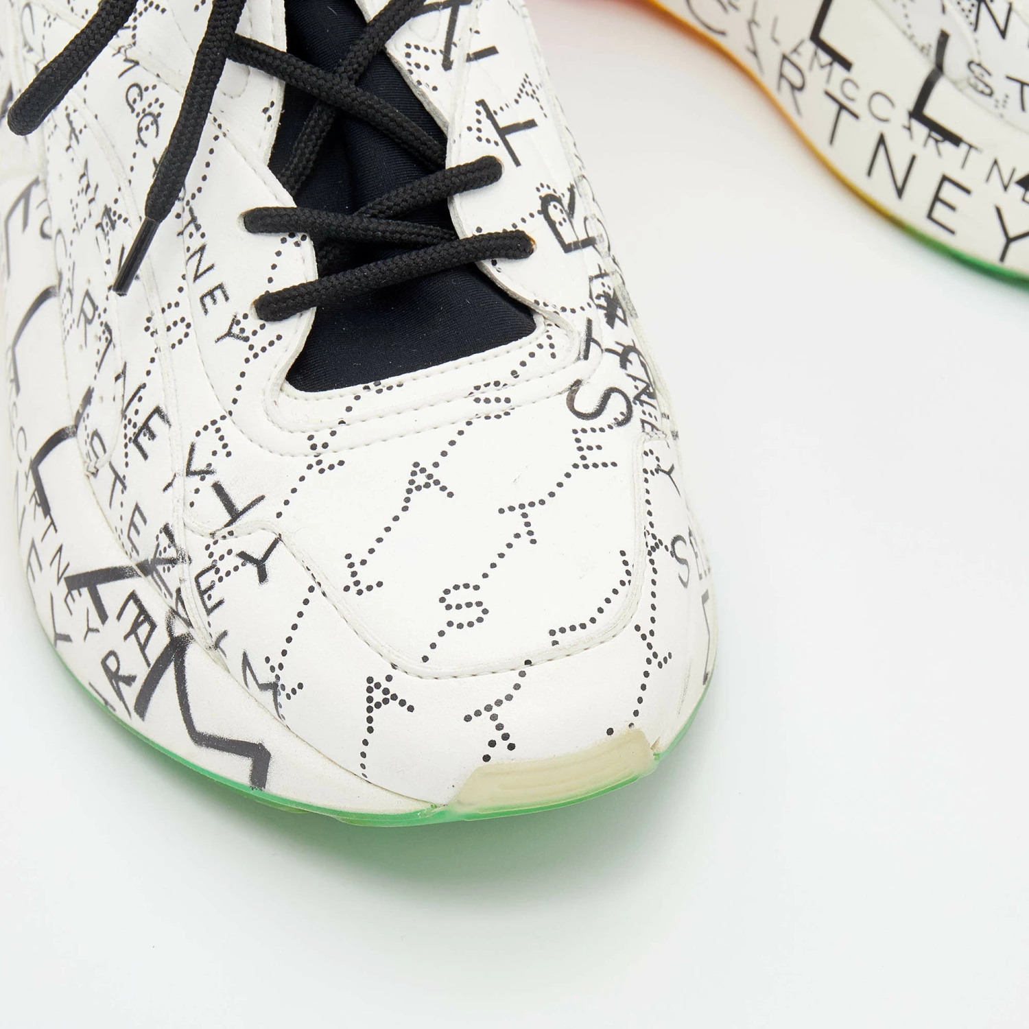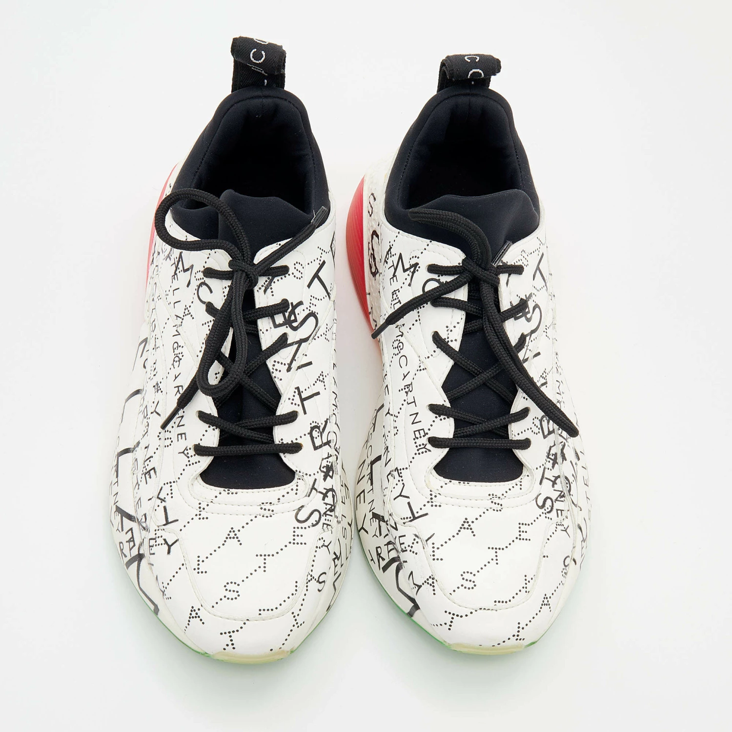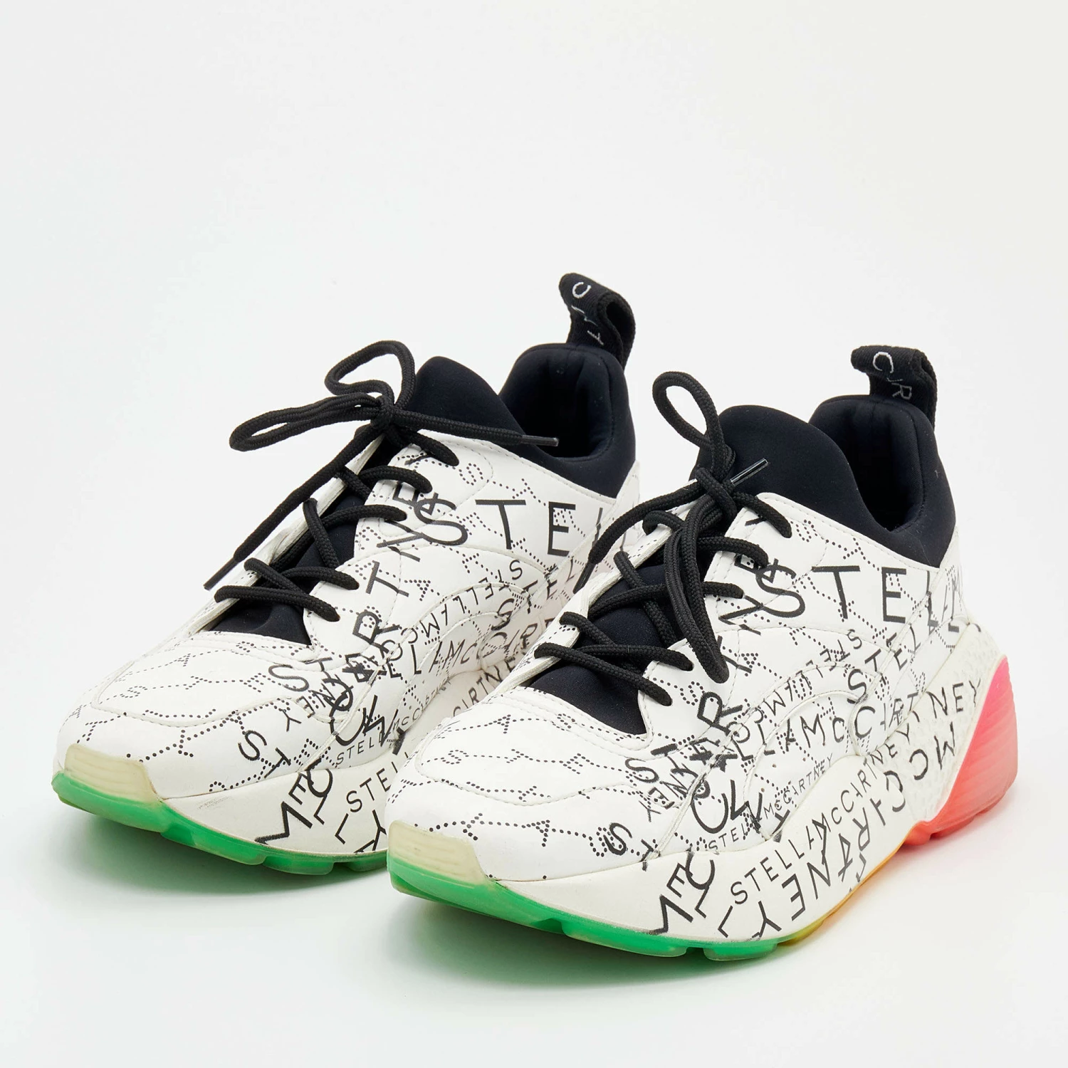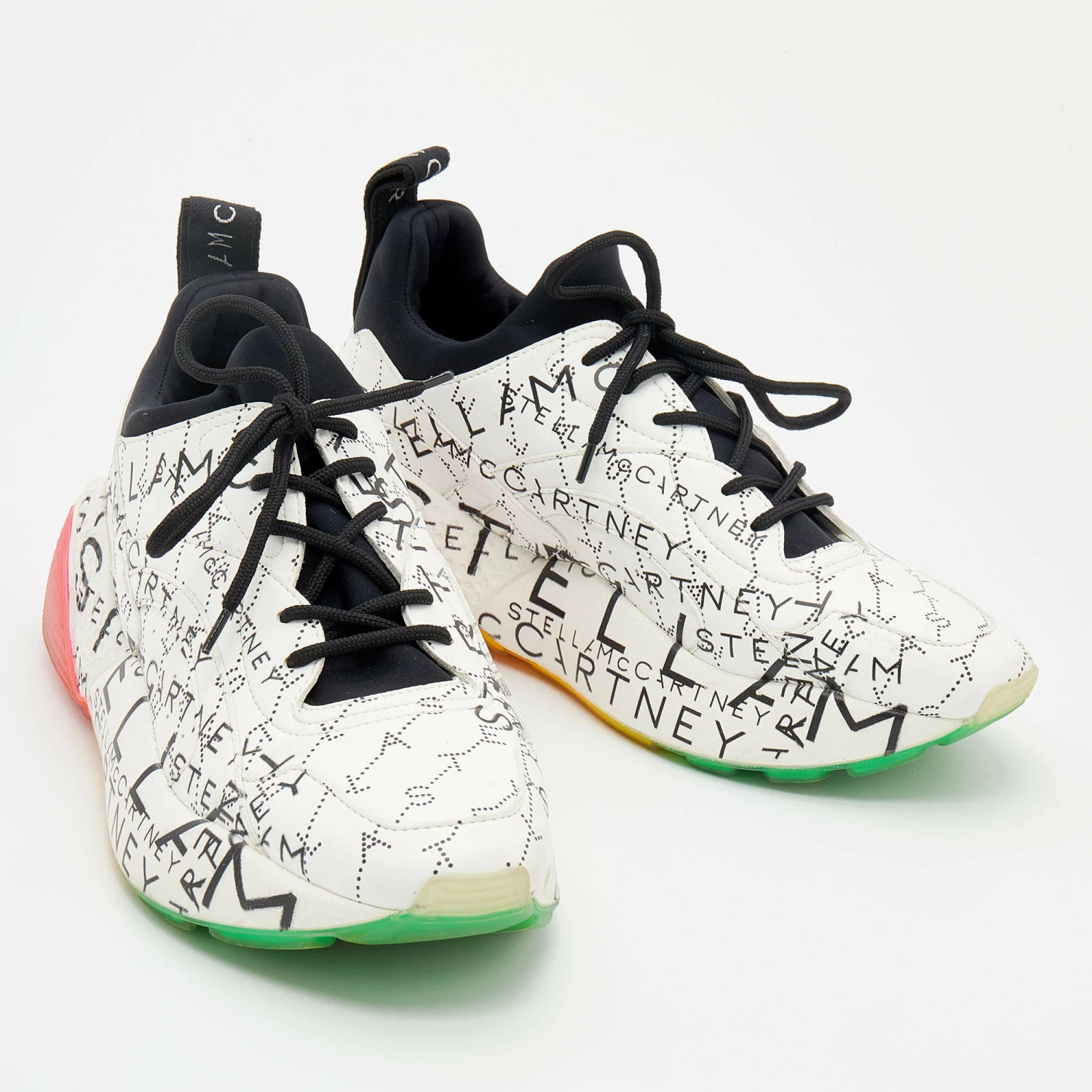 Stella McCartney brings you these stunning sneakers to feel comfortable and easy in. They are fashioned in white faux leather and neoprene, which is embellished with Monogram prints. They flaunt platforms and lace-up fastenings. Add an element of high fashion and luxury to your attire by wearing these sneakers.