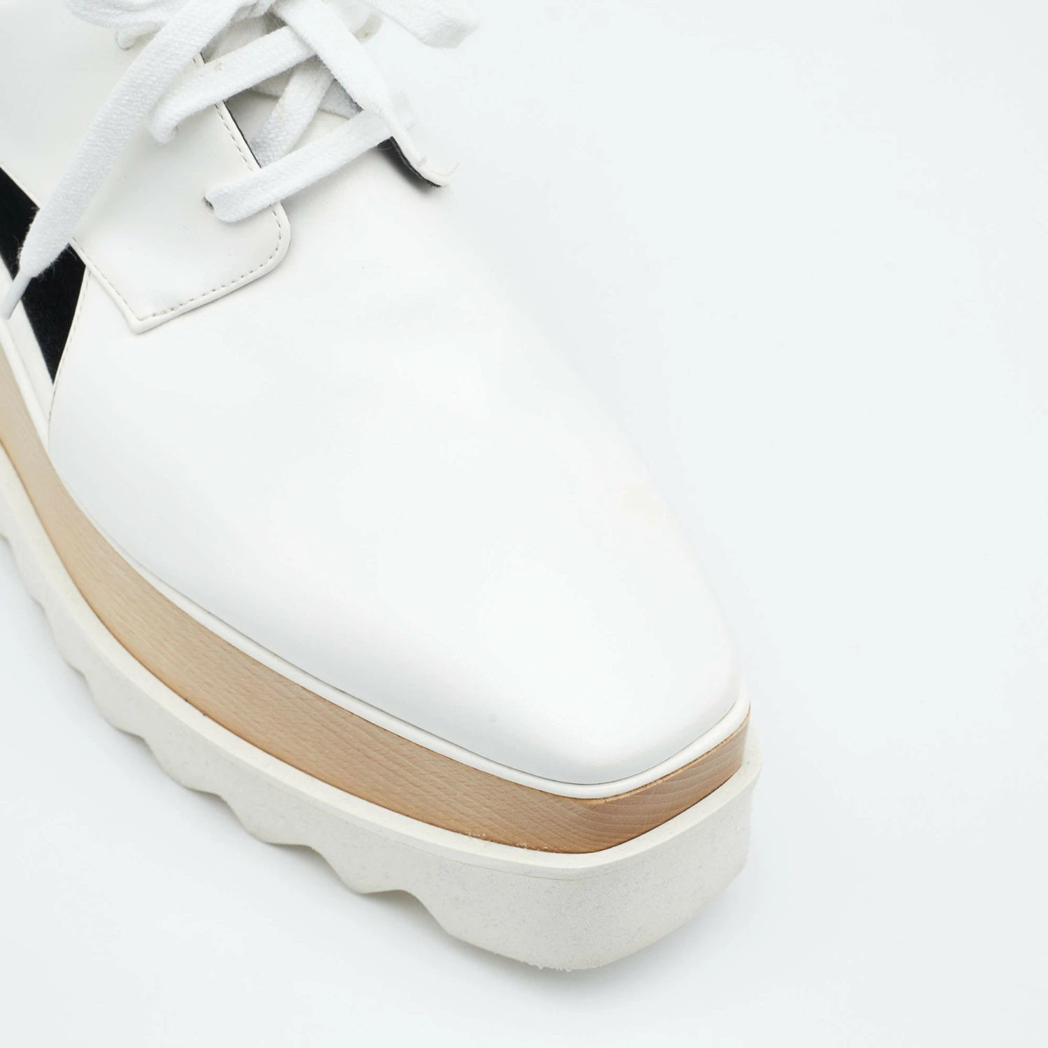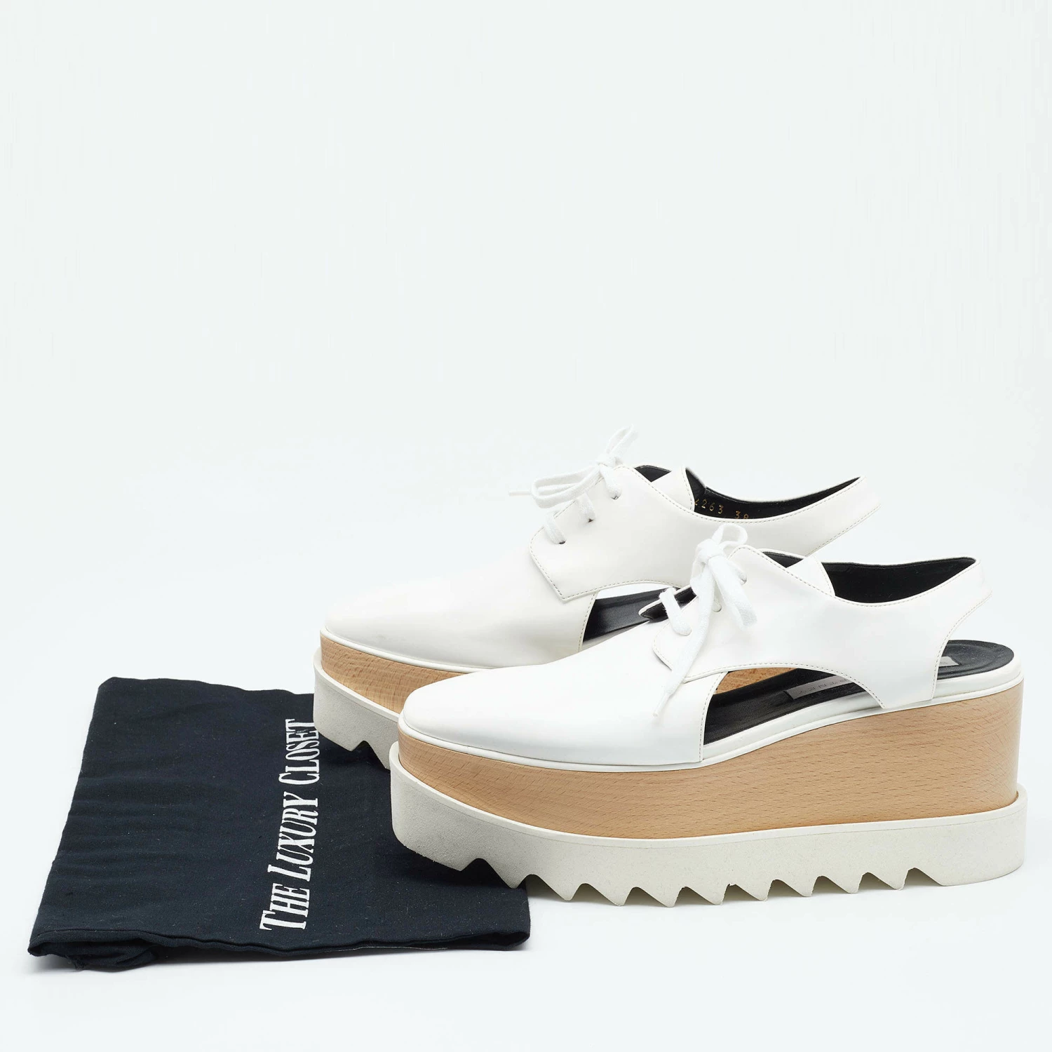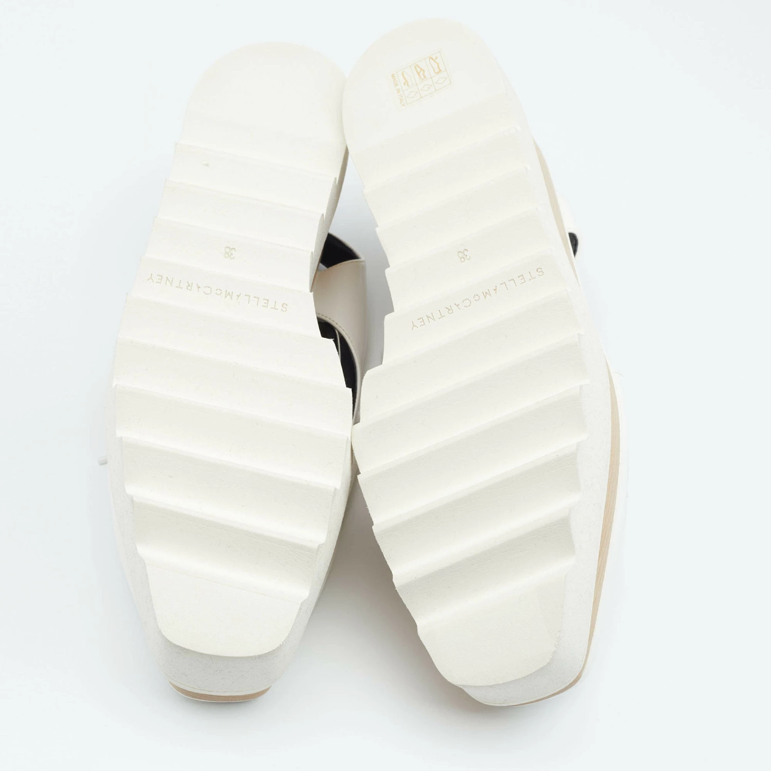 The unique silhouette of this pair of Stella McCartney derby makes it highly fashionable and chic. Constructed from faux leather, it is made striking with attractive cutouts and flaunts platforms, rubber soles, and 9cm heels.