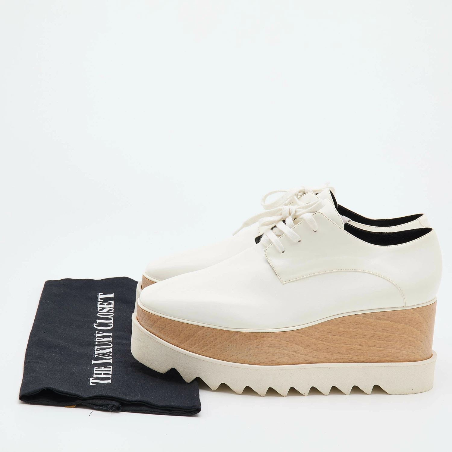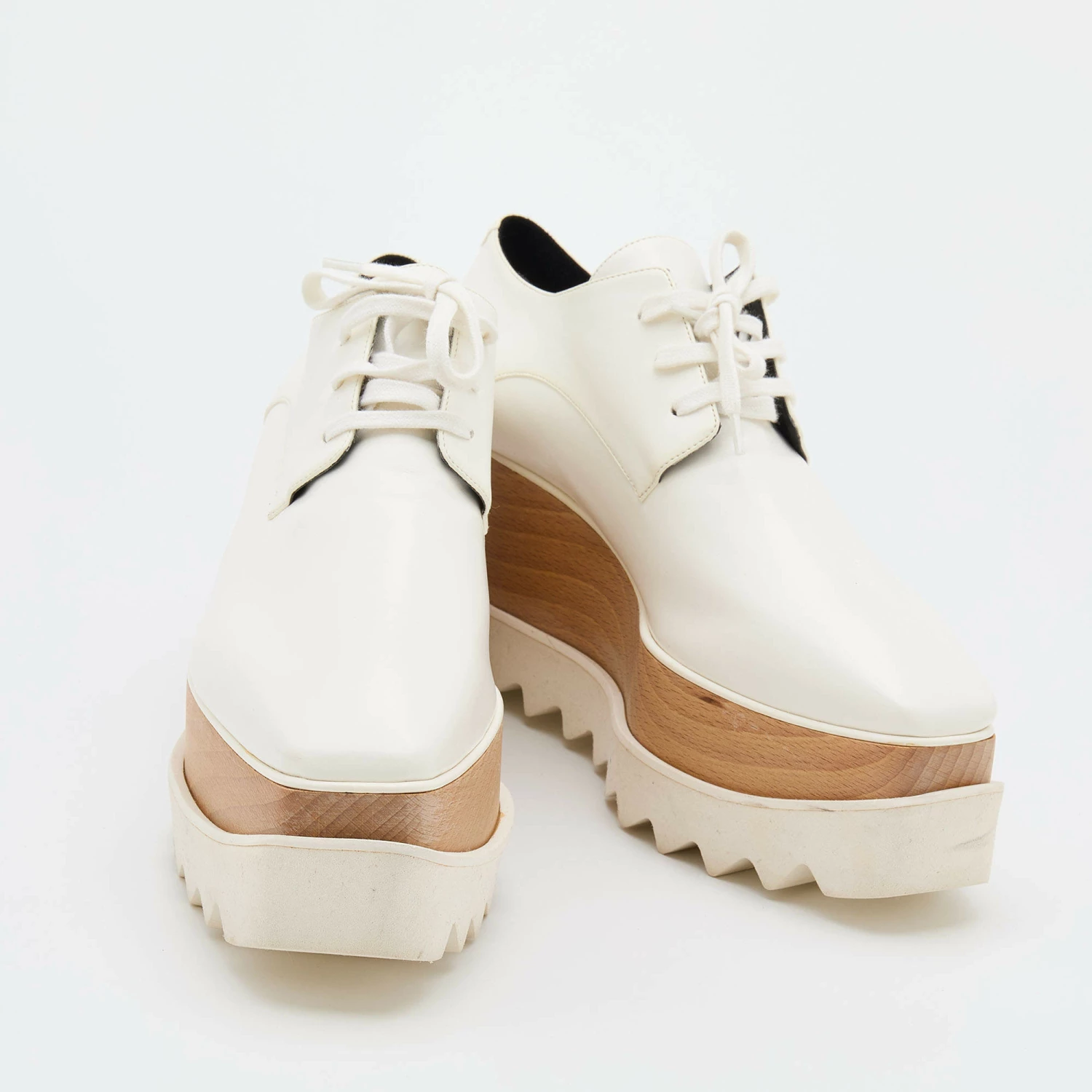Stella McCartney exudes her high style and unique fashion taste with these Elyse derby shoes. They are brimming with exquisite details and have a faux leather exterior, laces, and thick platforms. Get this pair today, and let it help you express your fabulous style.