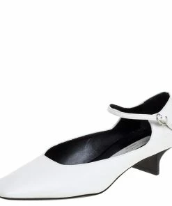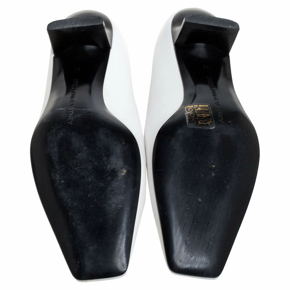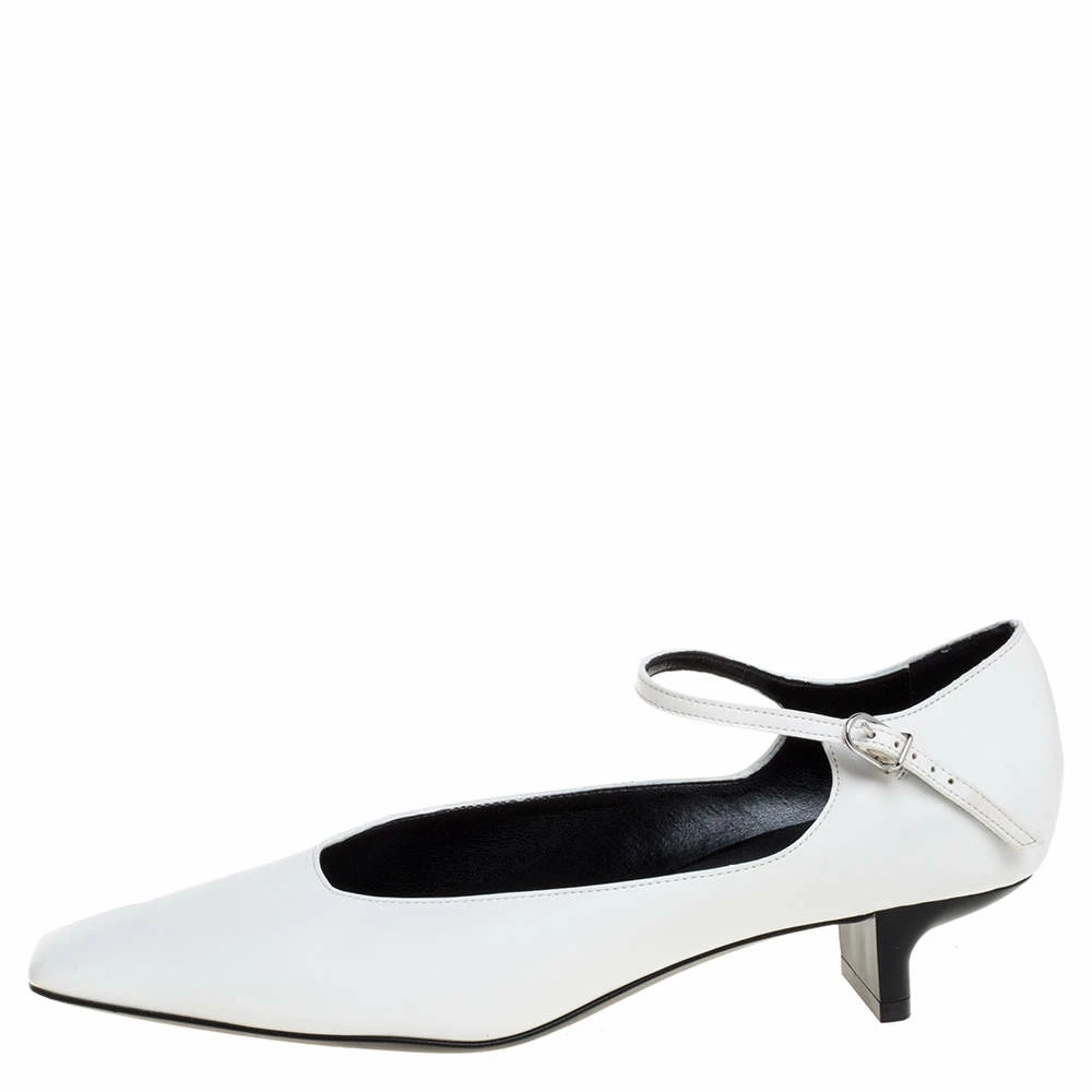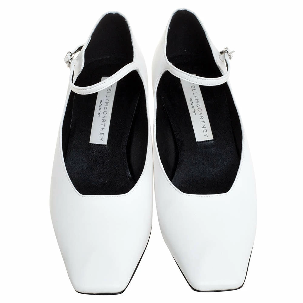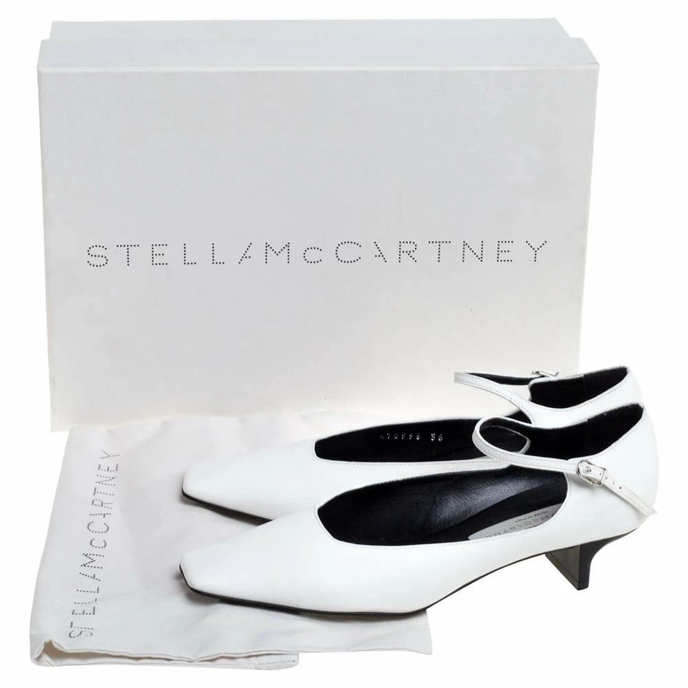 The Mary Jane just got even cooler thanks to Stella McCartney. This optic white pair has been made in Italy from smooth faux leather with a blunt square toe, slim ankle strap, and contrasting black sole. The low kitten heel enhances your posture but is still so easy to walk in.
