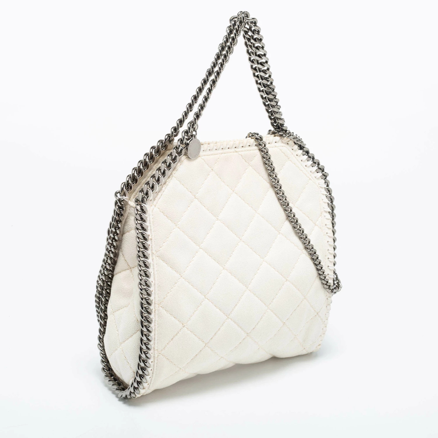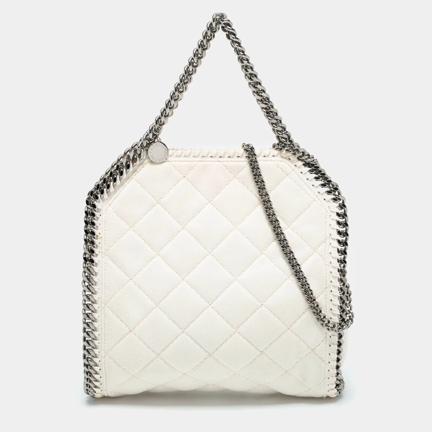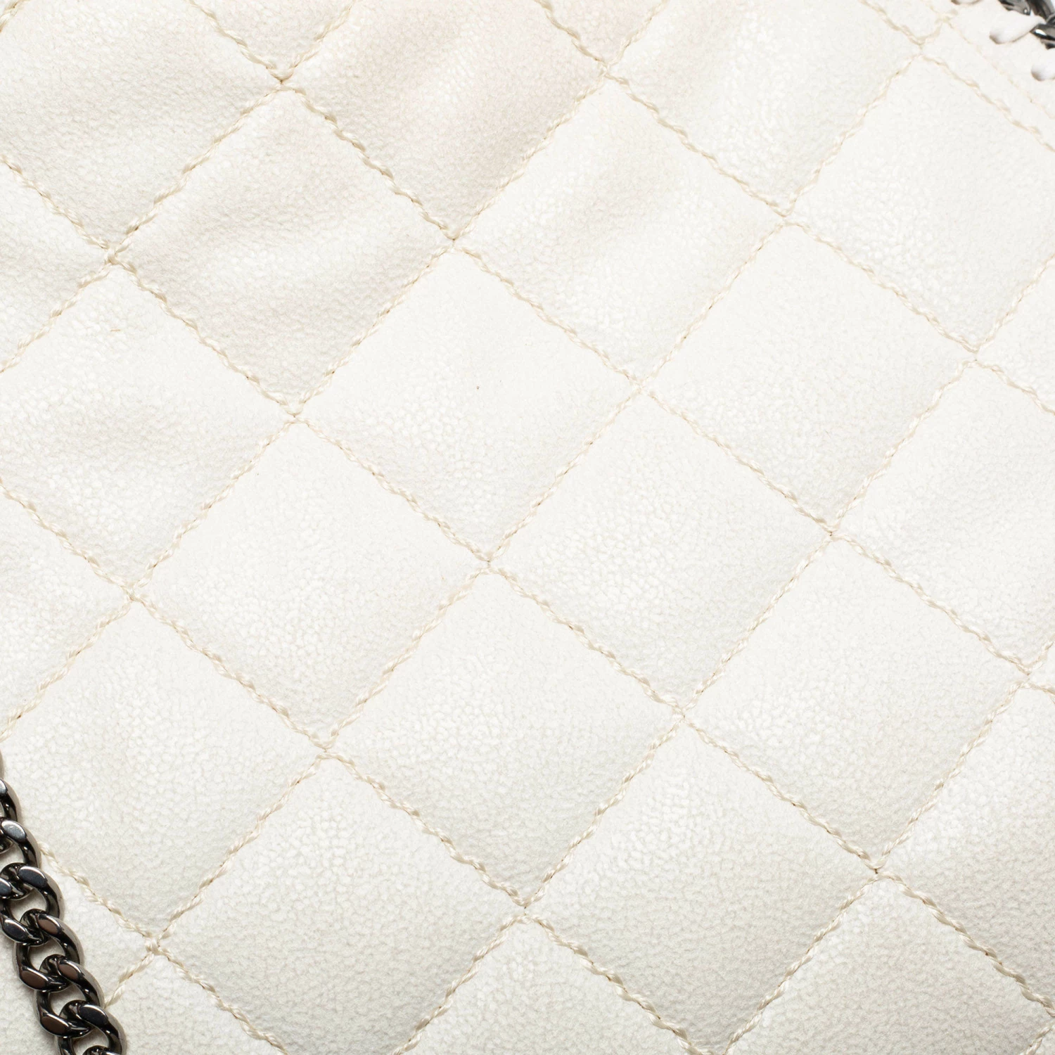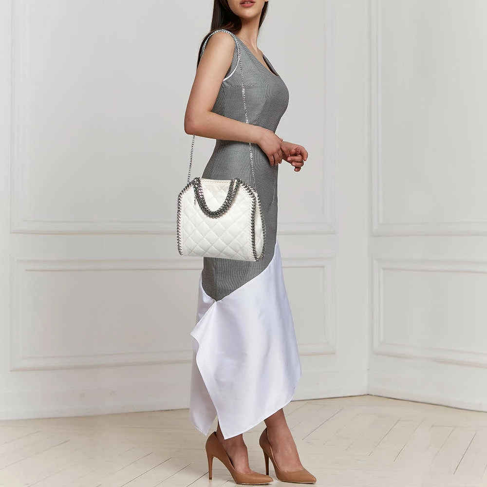The chain whipstitch detailing beautifully outlines this Stella McCartney Falabella tote. Crafted from faux suede, it is adorned with silver-tone accents, and the bag can be carried with dual chain handles. The fabric-lined interior of the bag can safely store your party essentials.