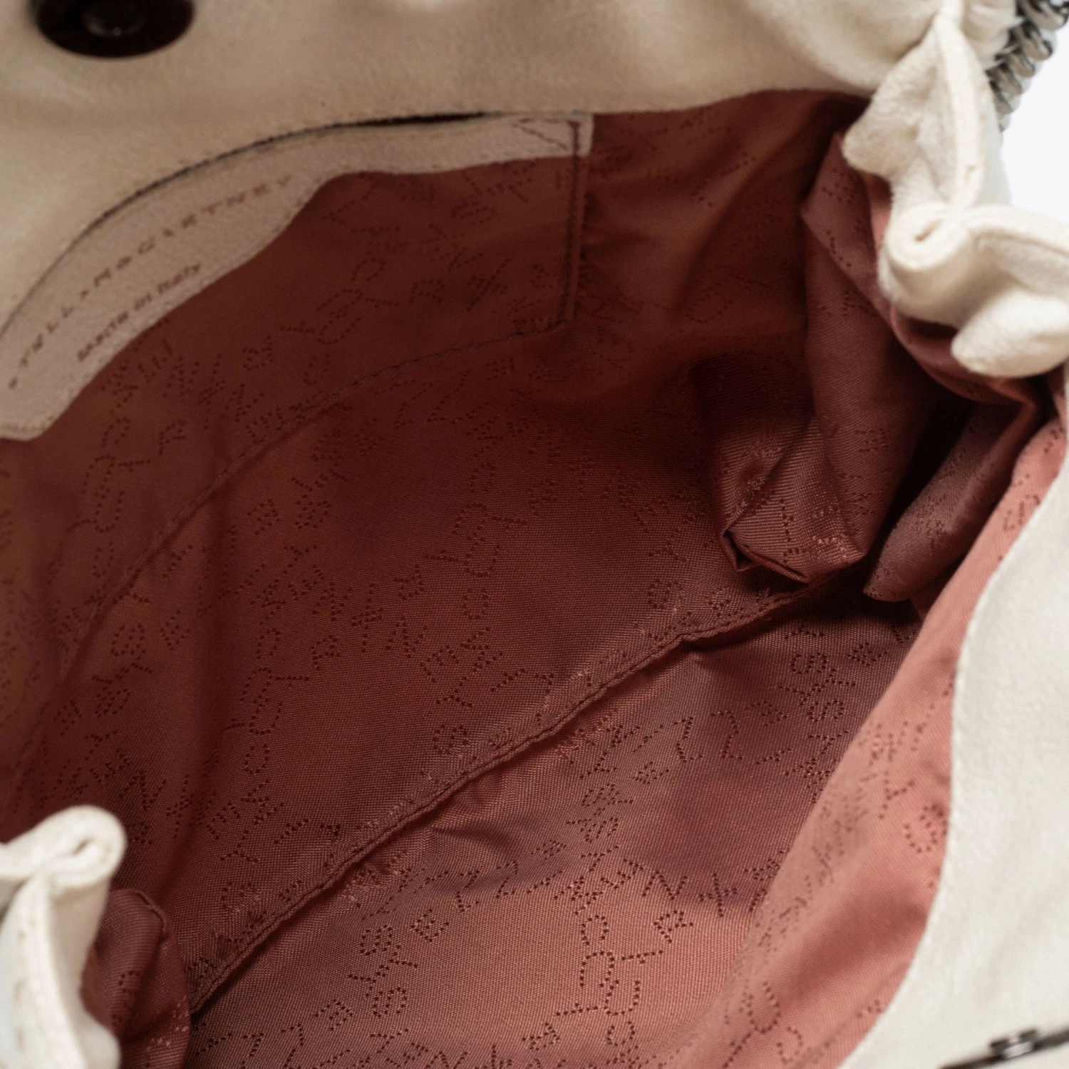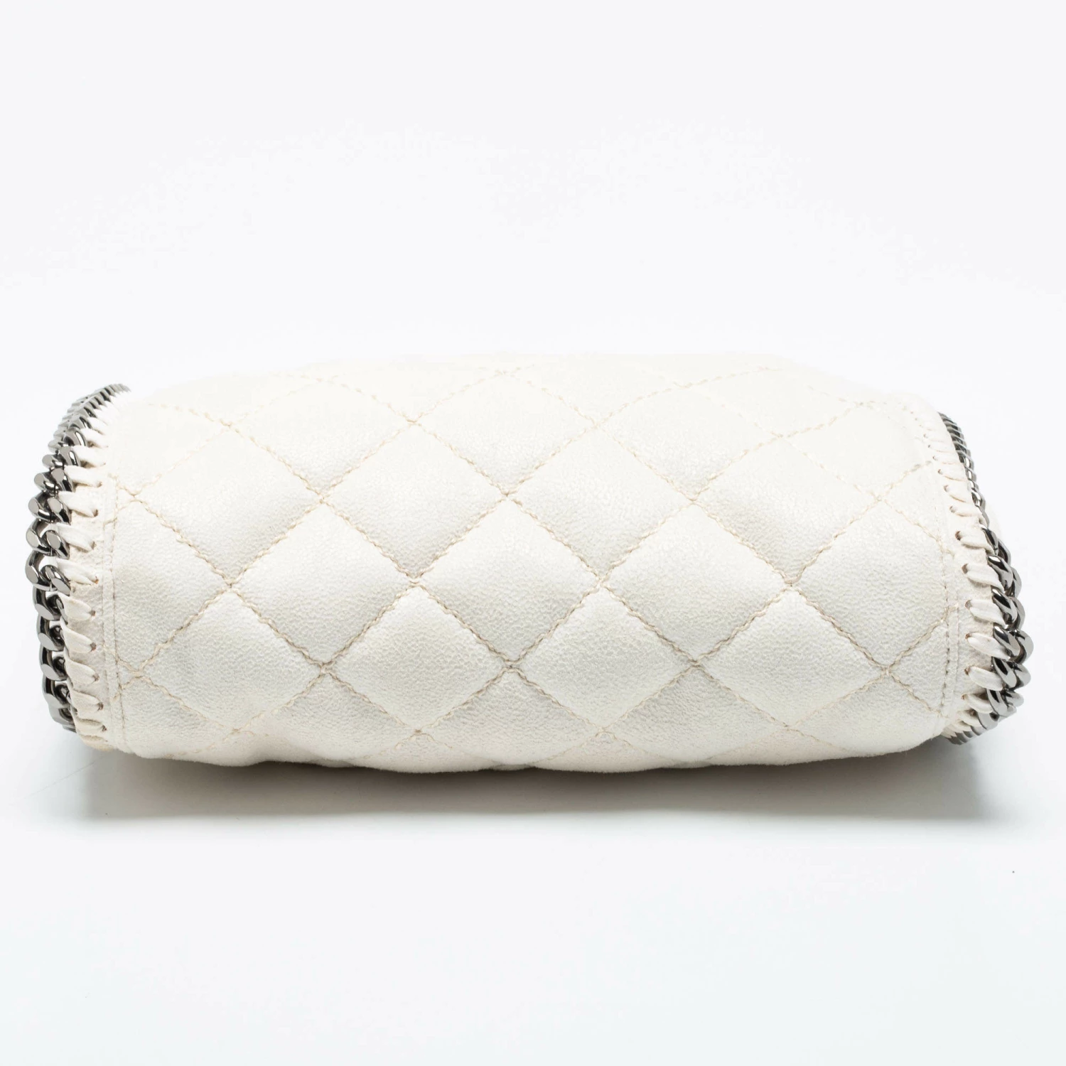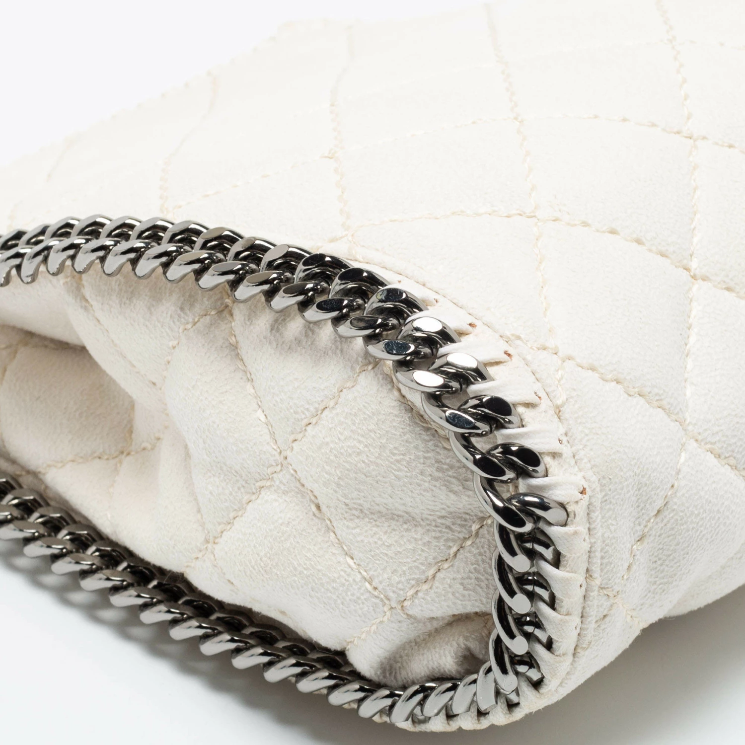 The chain whipstitch detailing beautifully outlines this Stella McCartney Falabella tote. Crafted from faux suede, it is adorned with silver-tone accents, and the bag can be carried with dual chain handles. The fabric-lined interior of the bag can safely store your party essentials.