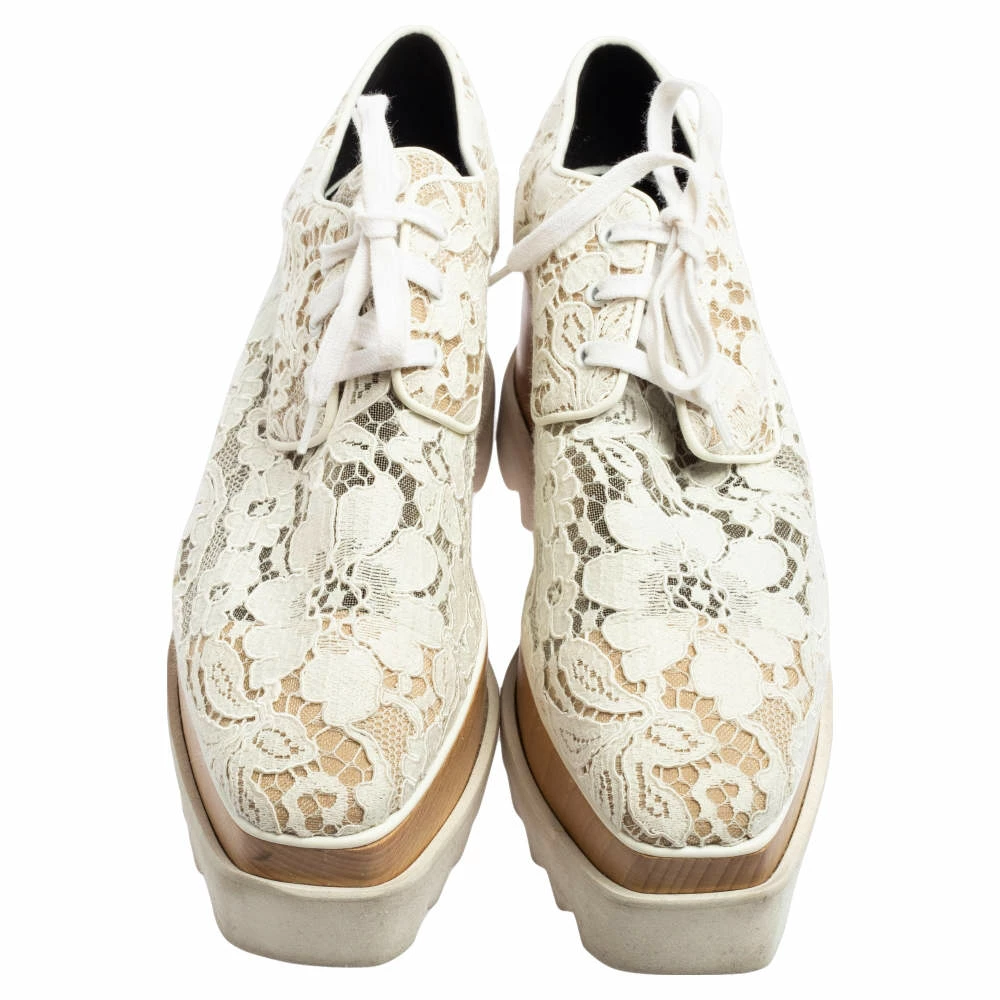 Stella McCartney exudes high style and unique fashion taste with these Elyse sneakers. They are brimming with exquisite details like the intricate white lace exterior, a chic silhouette, and thick platforms. They come with lace-ups on the vamps and white-toned hardware. Grab them today and express your fabulous style!