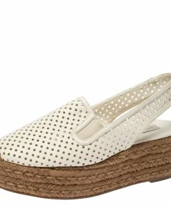 Stella McCartney’s designs always have an oomph factor to them and these funky and comfy wedges prove it too. Made from white perforated faux leather, this pair features slingback straps and stitched toes. Featuring 10 cm heels, these espadrilles wedges come with padded faux leather insoles.