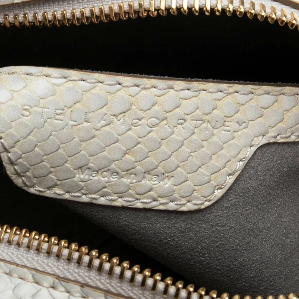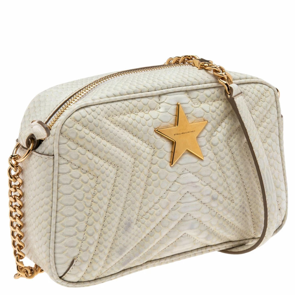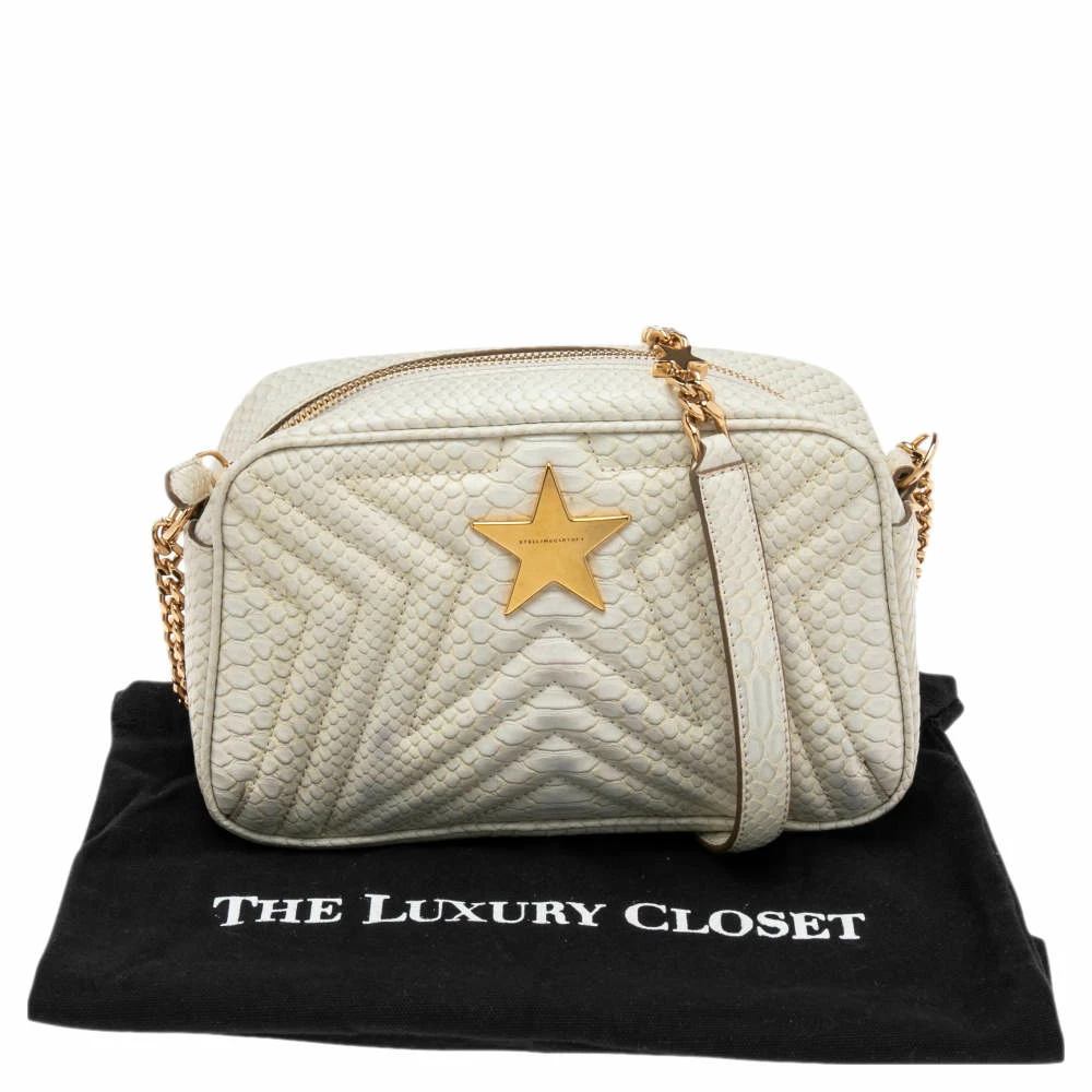 Carefully designed to evoke a grand and stately look, this python-embossed faux leather bag is sure to make heads turn. Its exterior is accented quilted patterns and a gold-tone star motif at the front face. The faux suede lining ensures an immaculate finish. It is complete with a gold-tone chain-link shoulder strap. Fall in love with this absolutely amazing bag from Stella McCartney.