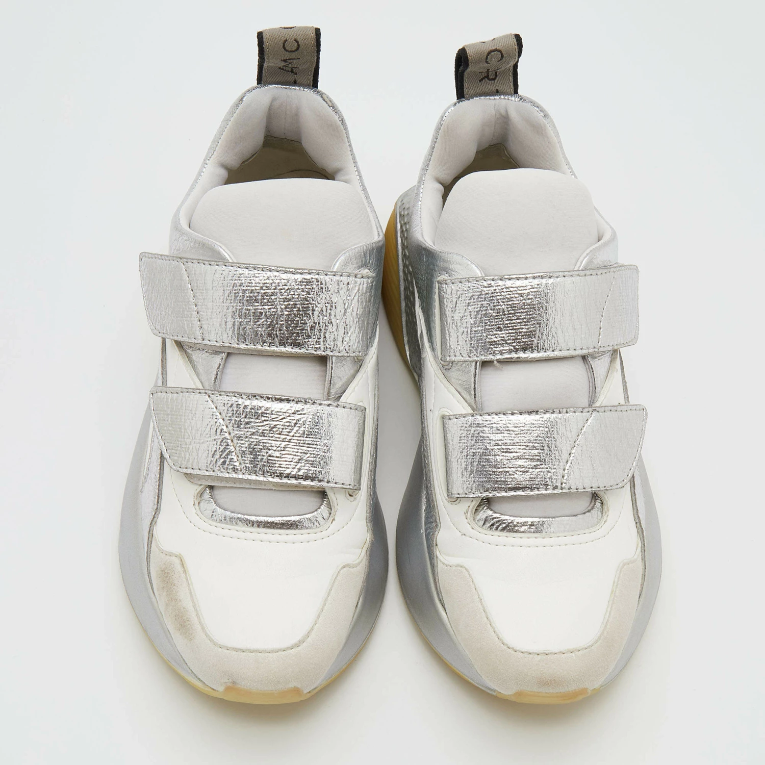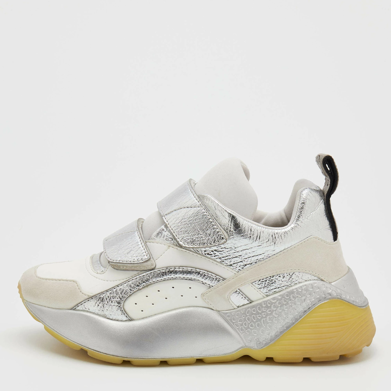 Stay in comfort with these sneakers from Stella McCartney. Crafted with a combination of faux leather and faux suede, this pair has textured rubber soles in contrasting tones along with velcro straps on the uppers. Smooth insoles complete these chunky Eclypse sneakers.