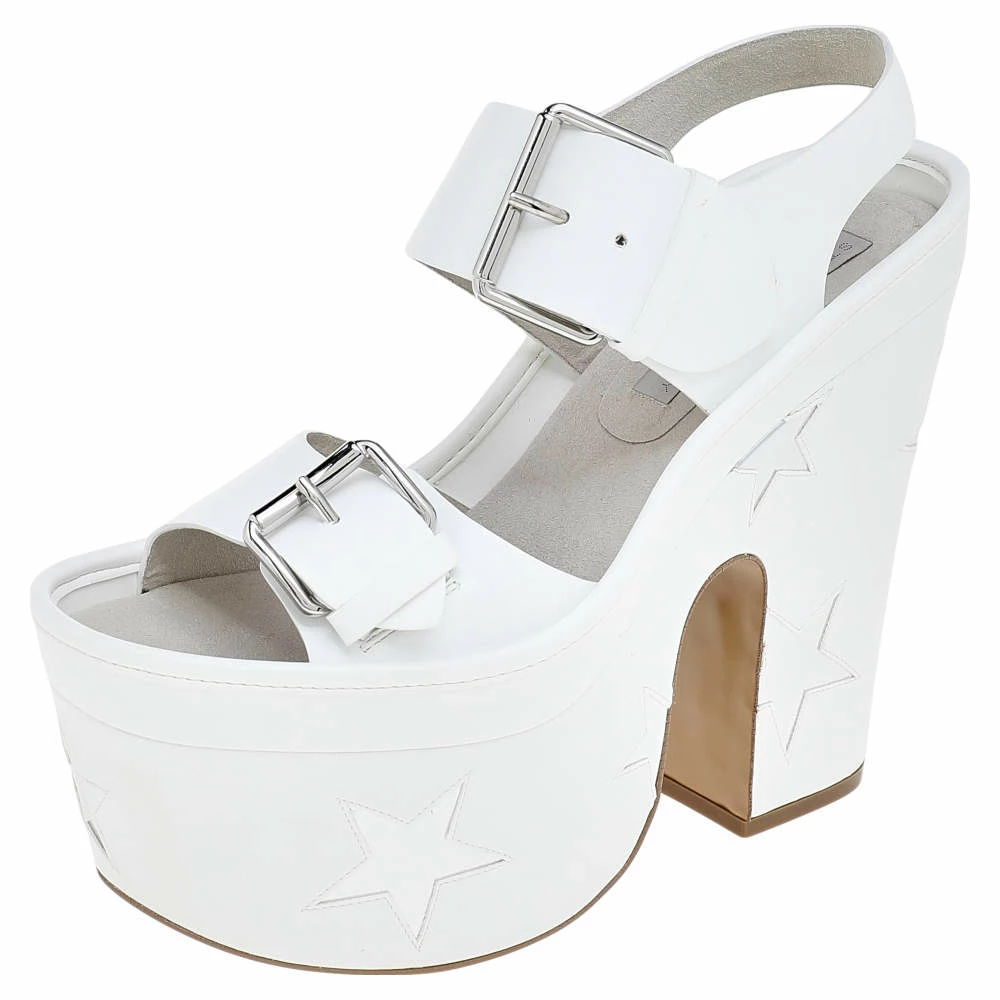 Characterized by a chunky size, these Stella McCartney sandals are so fashionable and comfortable. Made from faux leather, they are detailed with silver-hued stars and buckled straps.