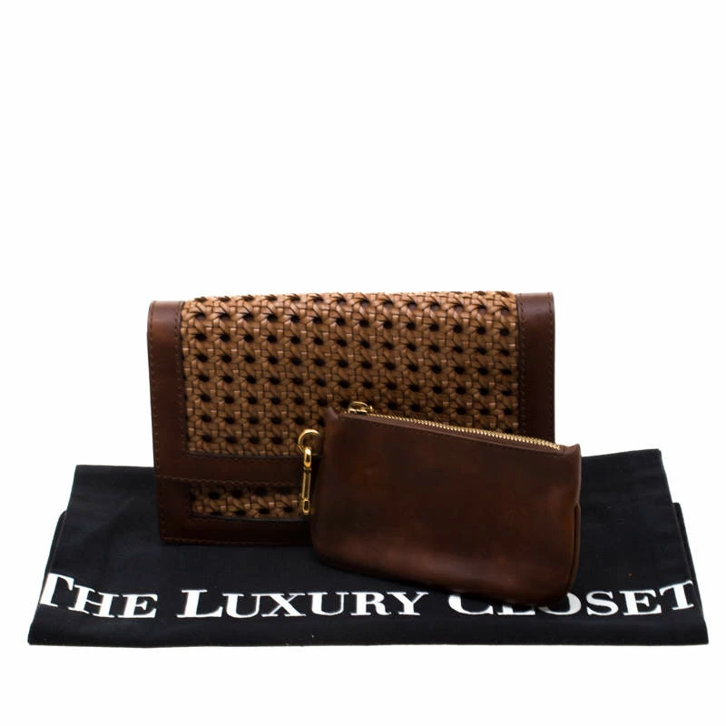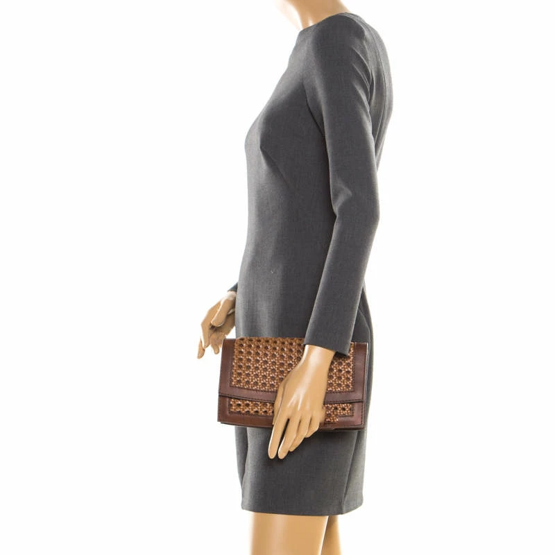 This lovely clutch from Stella McCartney is crafted from faux leather and features a wonderful woven design on the exterior. It flaunts a front flap closure that opens to a faux leather lined interior with enough space to carry all your daily essentials. It is one creation you definitely need to get your hands on!