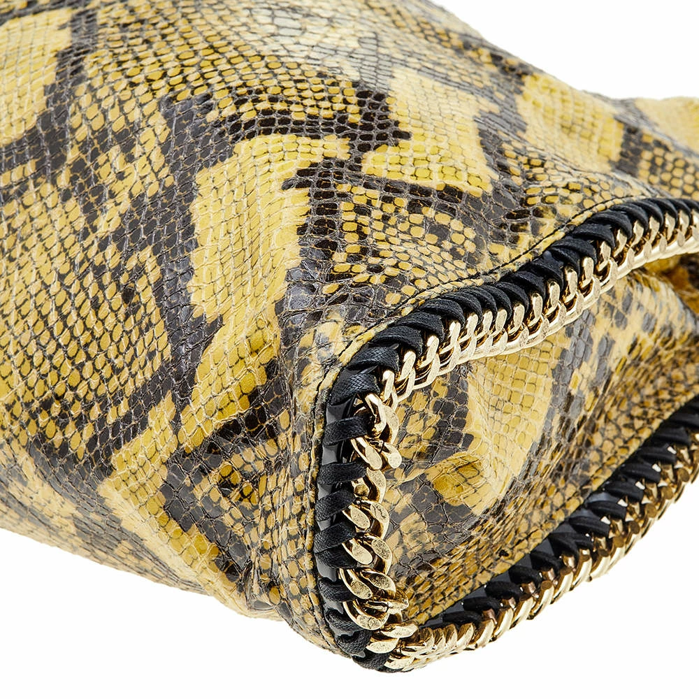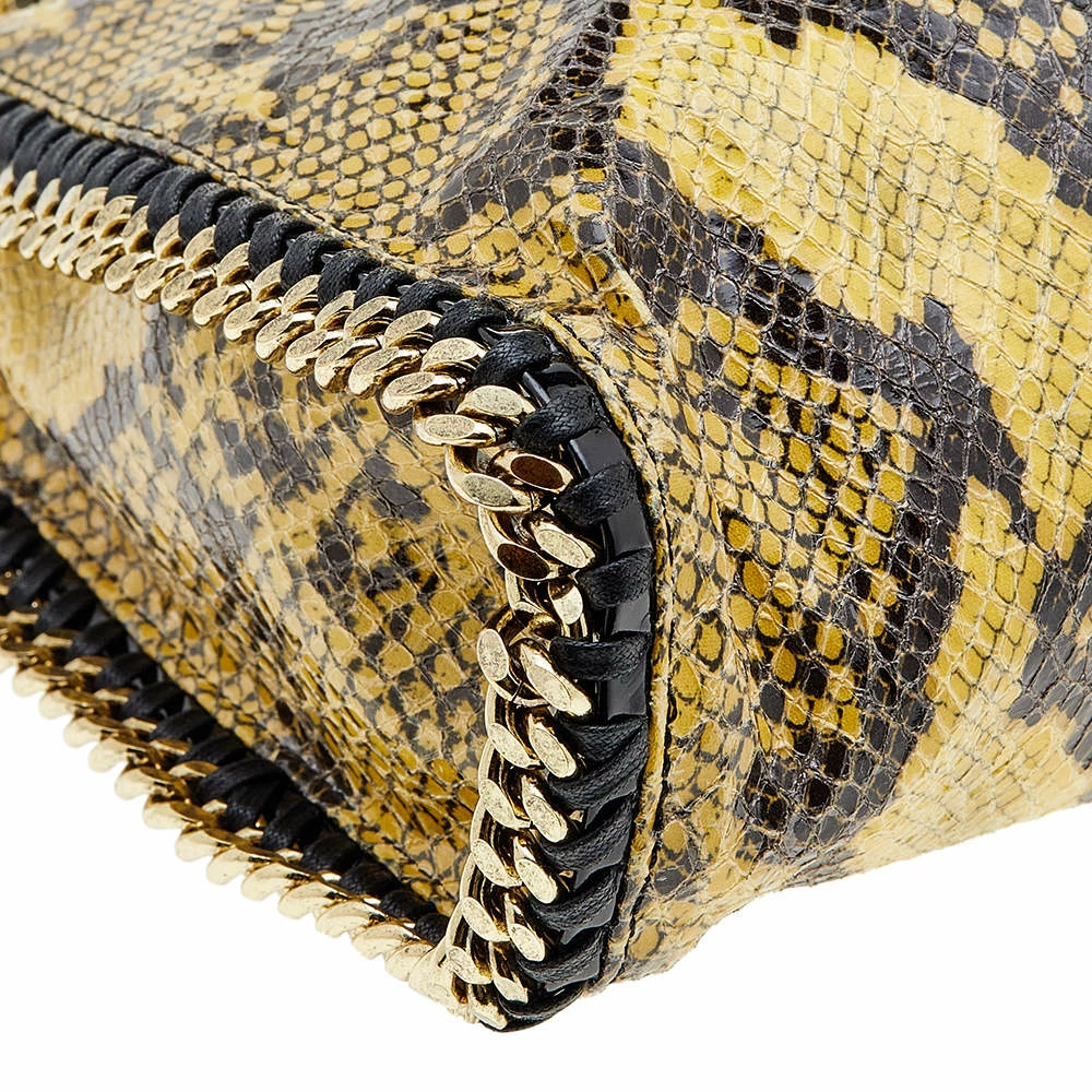 Stella McCartney’s Falabella bag exemplifies the label’s rock-chic appeal. The chain straps and whipstitched edges make the bag instantly recognizable. This iteration has been made from faux python leather in yellow and black colors and has a spacious fabric-lined interior that will hold all your essentials.