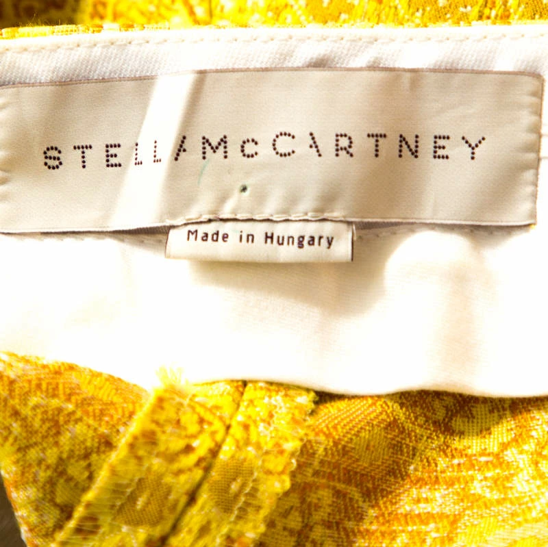 Flaunt these trousers from Stella McCartney. and make a statement everywhere you go. Crafted from cotton, it carries a bright yellow hue. It has a beautiful jacquard pattern throughout that adds interest. These tapered pants are styled with a zip closure, three pockets and a good fit. Pair with simple blouses and kitten heels for a polished look.