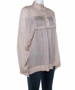 Wholesale ๐ Stella McCartney Pale Pink Printed Silk Billowing Sleeve Blouse S For ๐ฉ Women โญ