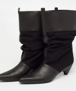 Wholesale 😍 Stella McCartney Black Faux Leather And Canvas Ankle 🥾 Boots Size 36 For 👩 Women 👏
