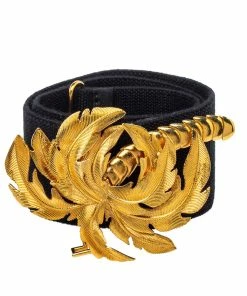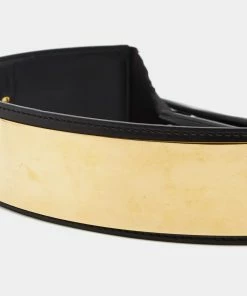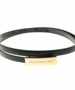 Cheap ⌛ Stella McCartney Black Faux Leather Gold Tone Metal Plate Waist Belt 70CM For 👩 Women 👍