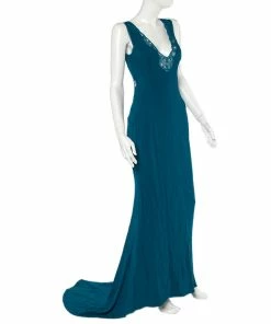 Wholesale 🔥 Stella McCartney Teal Green Crepe Lace Trim Detail Sleeveless Trail Gown M For 👩 Women 😍
