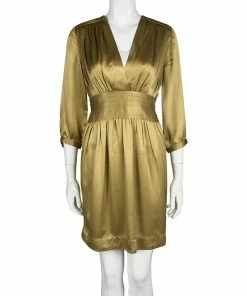 Deals ๐ฅ Stella McCartney Dull Gold Satin Pleated Long Sleeve ๐ Dress S For ๐ฉ Women ๐