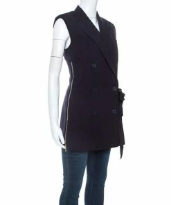 Cheapest 🛒 Stella McCartney Blue Wool Ribbed Sleeve Detailed Round Neck Sweater M For 👩 Women ✨
