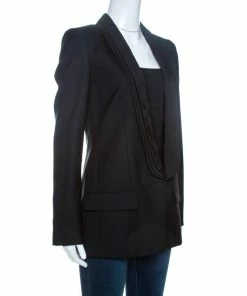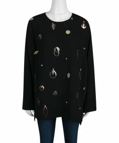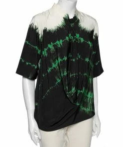 Discount 🌟 Stella McCartney Black Tie-Dye Printed Silk Asymmetrical Draped Blouse M For 👩 Women 😀