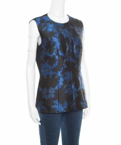 Flash Sale 🛒 Stella McCartney Black And Blue Floral Jacquard Sleeveless Peplum Top M For 👩 Women 🎉