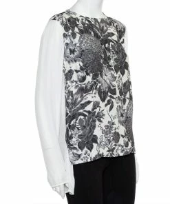 Outlet ⭐ Stella McCartney Monochrome Floral Printed Silk Asymmetric Hem Detail Top M For 👩 Women 🤩