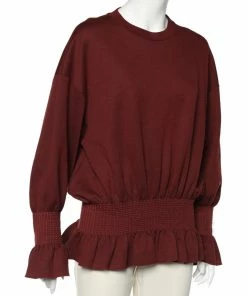 Discount ๐งจ Stella McCartney Burgundy Cotton Knit Smocked Detail Sweatshirt M For ๐ฉ Women ๐
