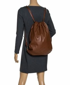 New 🎁 Stella McCartney Camel Logo Perforated Faux Leather Drawstring 🎒 Backpack For 👩 Women ✨