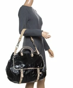 Discount 🤩 Stella McCartney Black Faux Patent Leather And Canvas Top Handle Bag For 👩 Women ⭐