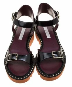 Cheap 🔥 Stella McCartney Black Faux Leather Odette Studded Flat 🩴 Sandals Size 41 For 👩 Women 👍