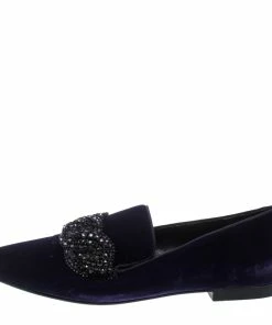 Cheap 🥰 Stella McCartney Purple Velvet Crystal Embellished Smoking Slippers Size 38.5 For 👩 Women ⌛