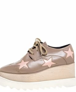 Buy 😀 Stella McCartney Beige Faux Leather Elyse Star Platform Lace Up Derby Size 35.5 For 👩 Women 🎁