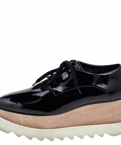 Buy 🧨 Stella McCartney Black Faux Patent Leather Elyse Platforms 👟 Sneakers Size 39 For 👩 Women ⭐