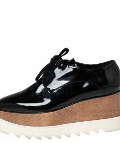 Deals 👍 Stella McCartney Black Faux Patent Leather Elyse Platform 👟 Sneakers Size 38 For 👩 Women 🎉