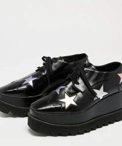 Discount 😍 Stella McCartney Black/Gold Faux Leather Elyse Star Platform Derby Size 39 For 👩 Women ✨