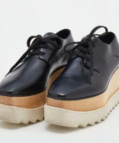 Promo ✨ Stella McCartney Black Faux Leather Elyse Platform Derby 👟 Sneakers Size 36 For 👩 Women ⌛