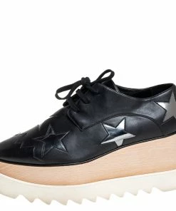 Budget 🎉 Stella McCartney Silver/Black Faux Leather Elyse Star Platform Derby Size 41 For 👩 Women 🔔